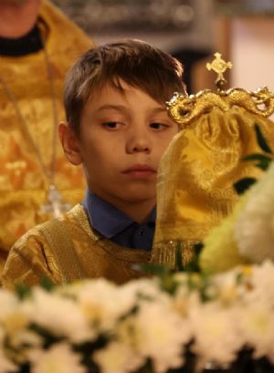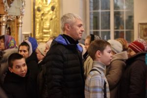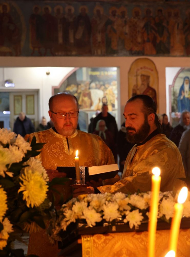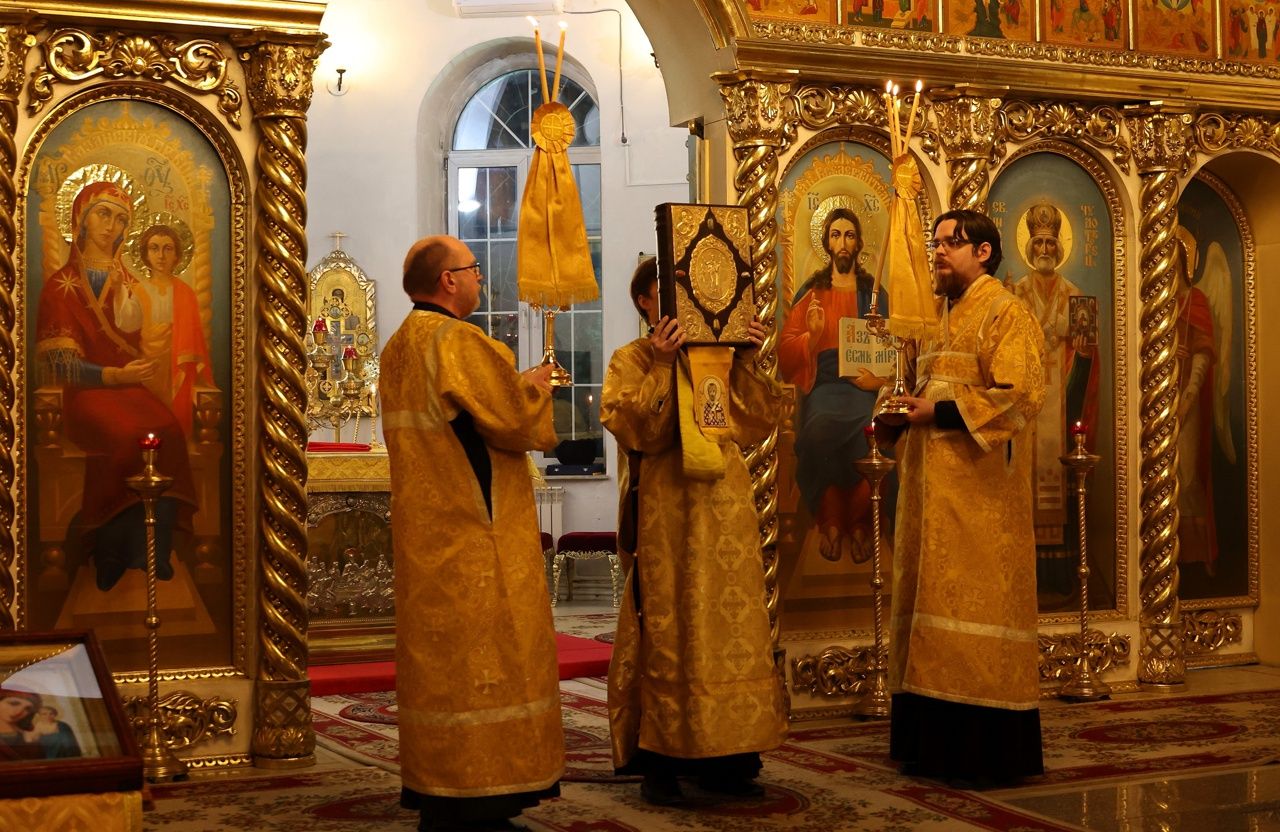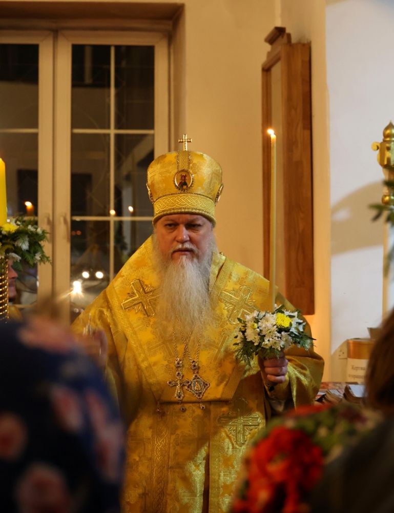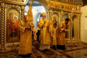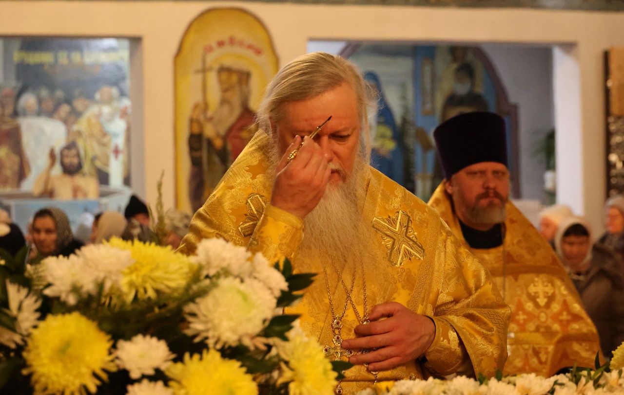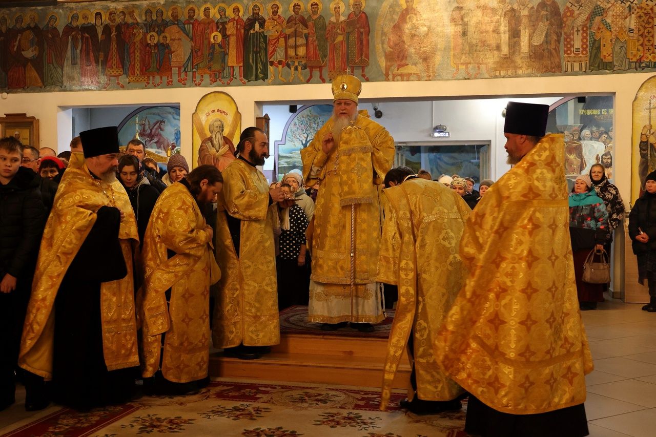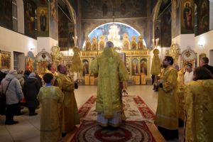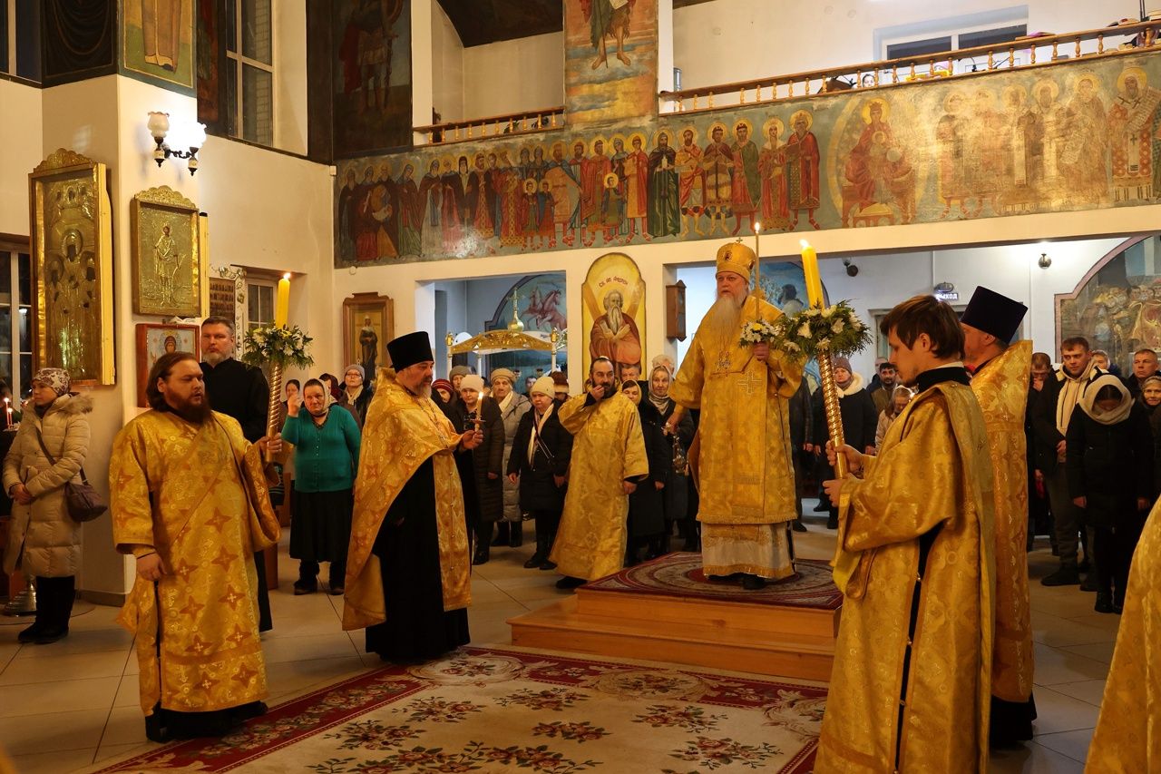 Его Преосвященству сослужили клирики собора протоиерей Виталий Михеев, иерей Сергий Першаков, диакон Иоанн Захаров и диакон Герман Михайлов. Песнопения исполнял архиерейский хор.