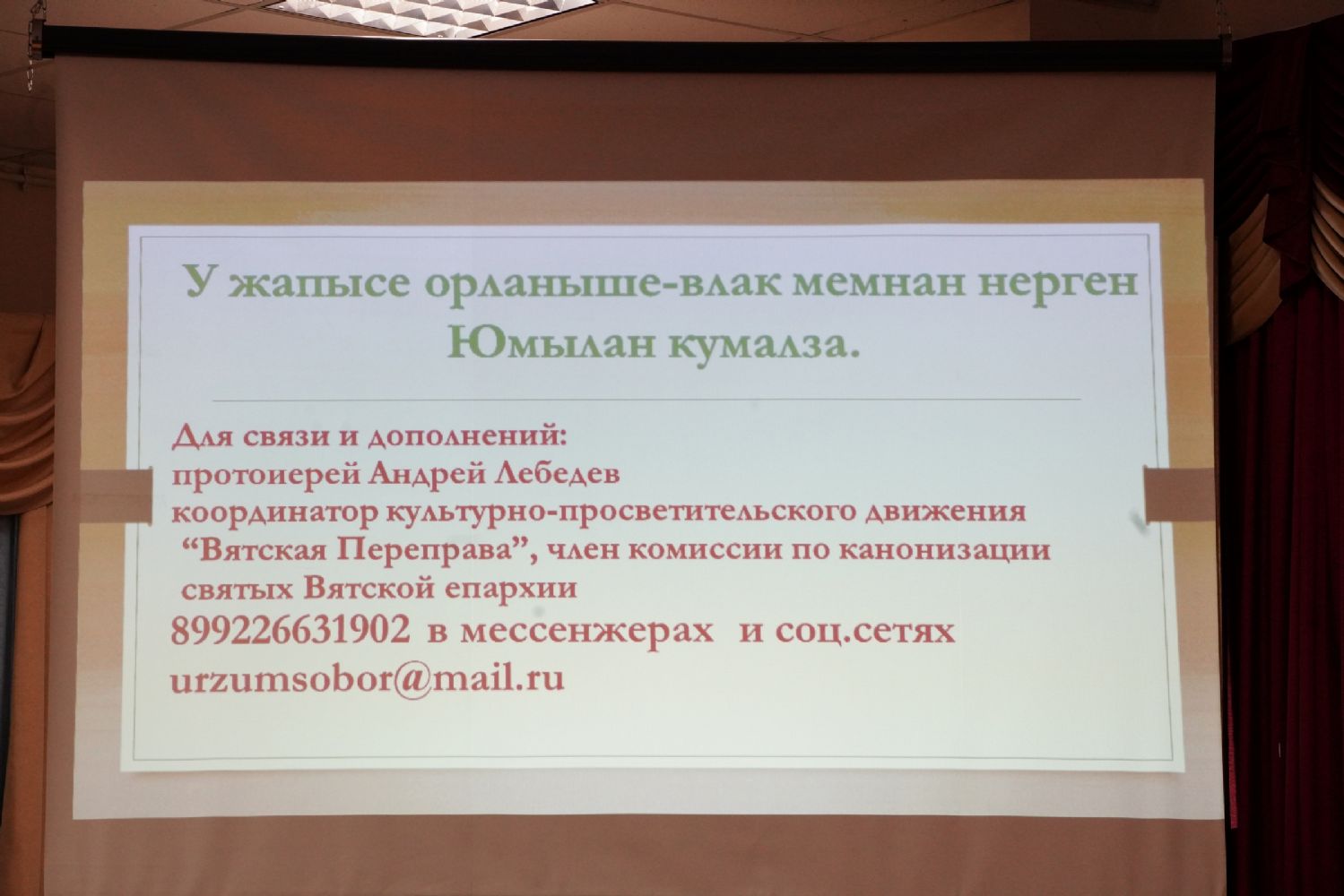 Также собравшимся в зале был продемонстрирован фильм о Смоленском соборе, снятый ГТРК «Марий Эл».