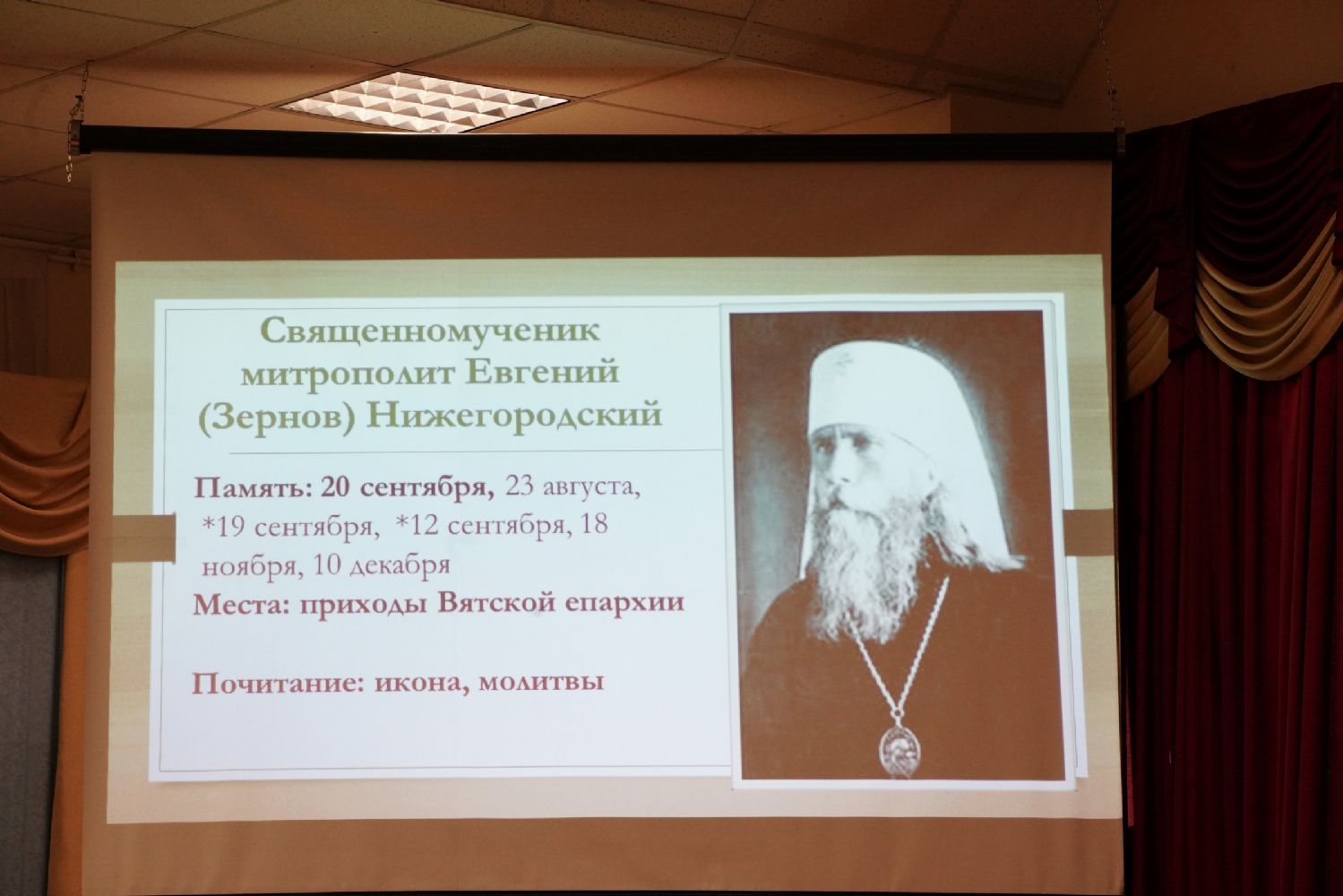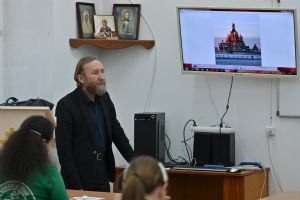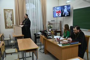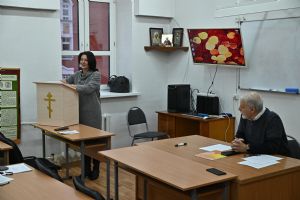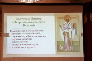 Отец Андрей рассказал о формах почитания священномучеников на вятской земле – это и богослужения в дни их памяти, молебны им, и выставки, музейные экспозиции, публикации в СМИ, и образовательные мероприятия для различных аудиторий, и т.д.