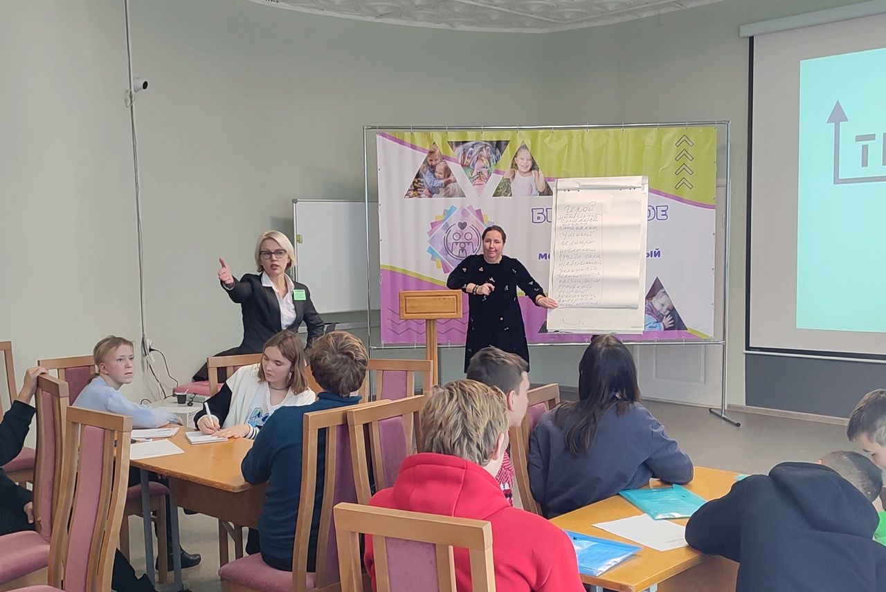 После блока вопросов и рефлексии последовало психологическое упражнение «Магазин добрых качеств», в ходе которого ребята должны были выявить свои положительные качества и обменять их на другие положительные, которых им не достаёт. Тренинг провела заместитель директора Республиканского центра «Доверие» Анна Николаевна Ларкина.