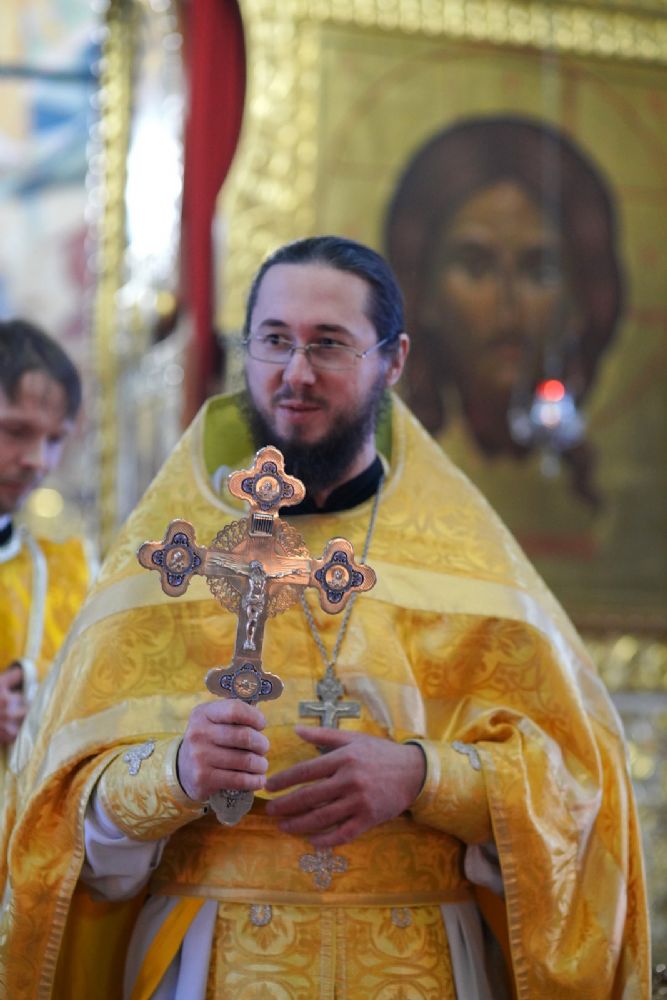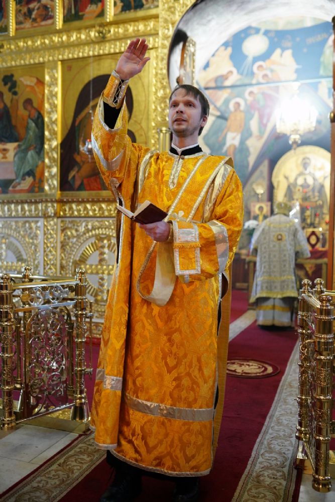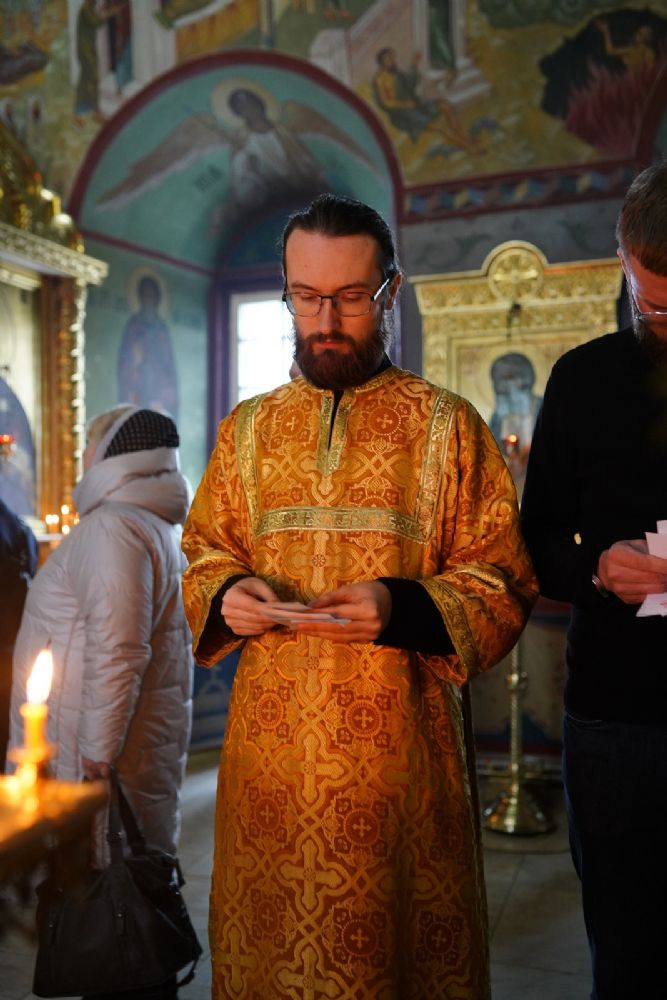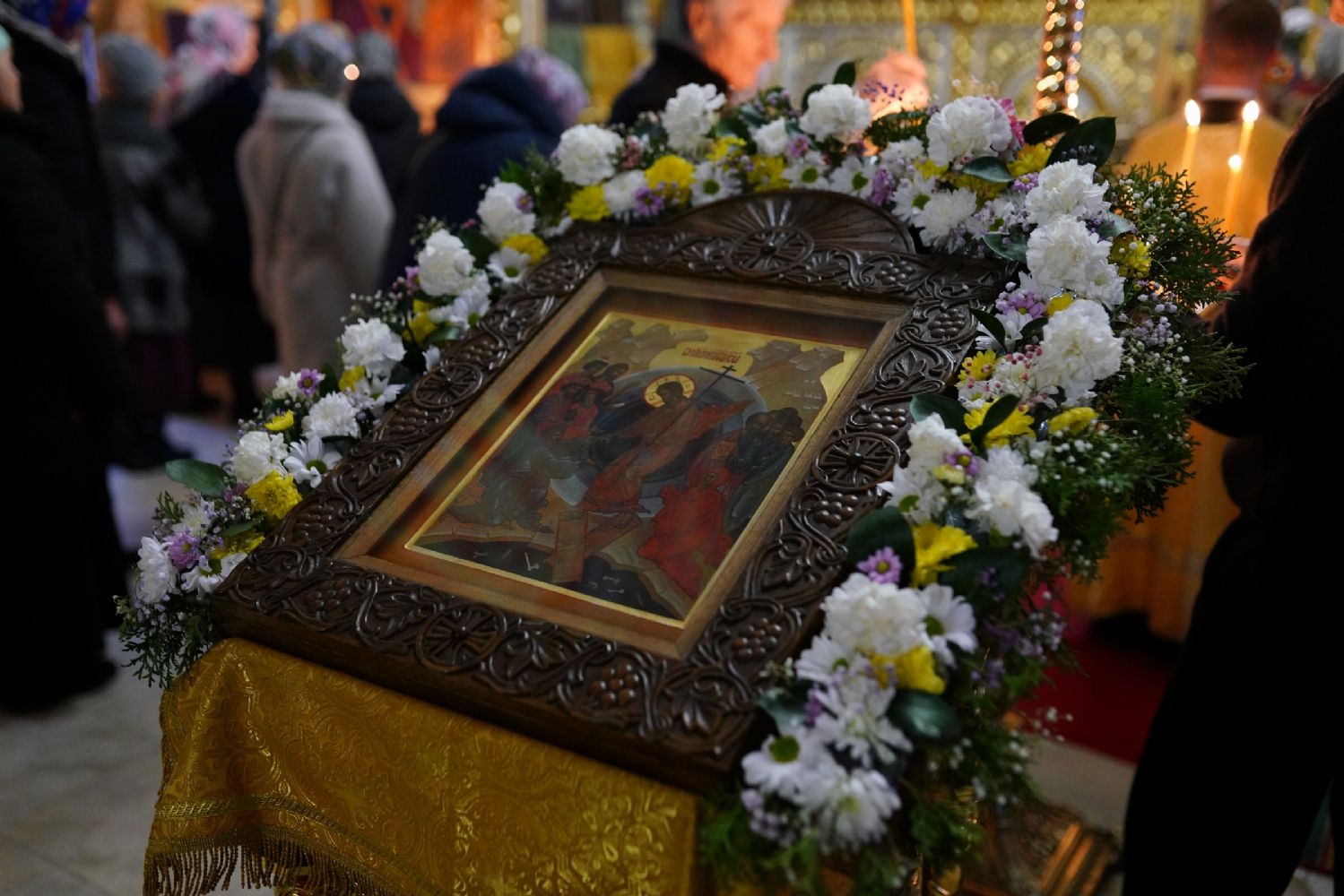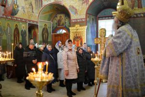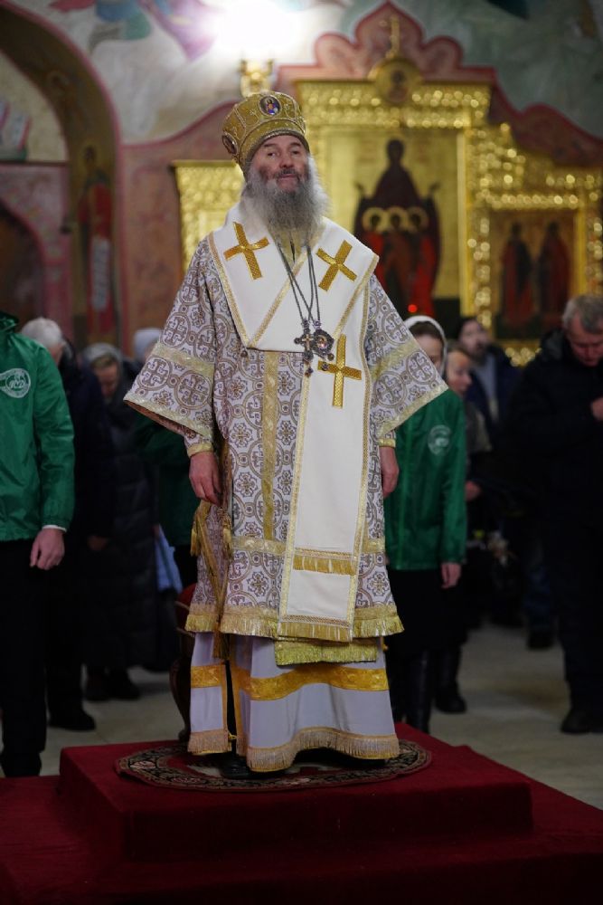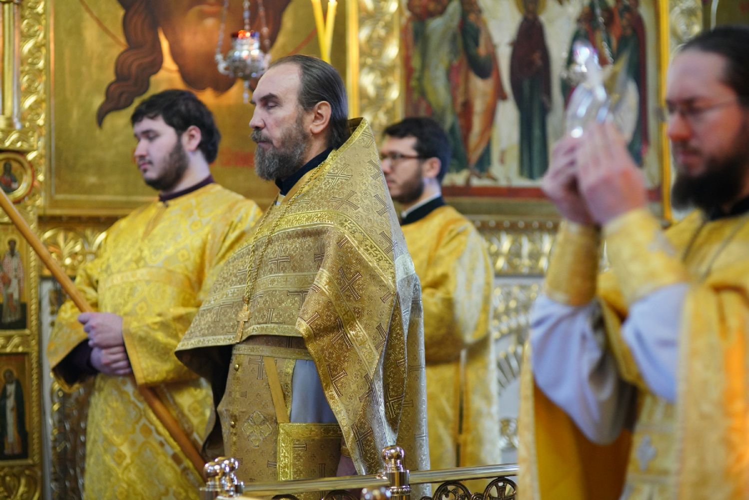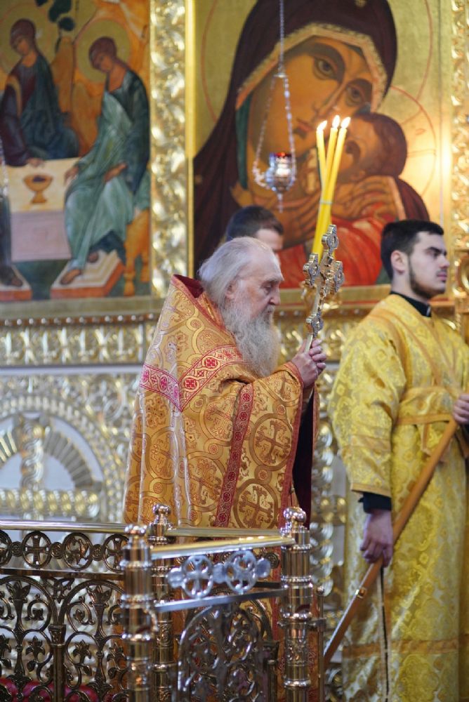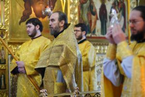Архипастырю сослужили секретарь Йошкар-Олинского епархиального управления иеромонах Серафим (Пасанаев), настоятель собора протоиерей Евгений Кутырев, клирики собора иерей Димитрий Копылов и диакон Владимир Лихачев, а также протодиакон Михаил Козловский. Песнопения исполнял хор собора под управлением регента Ангелины Бабиной.