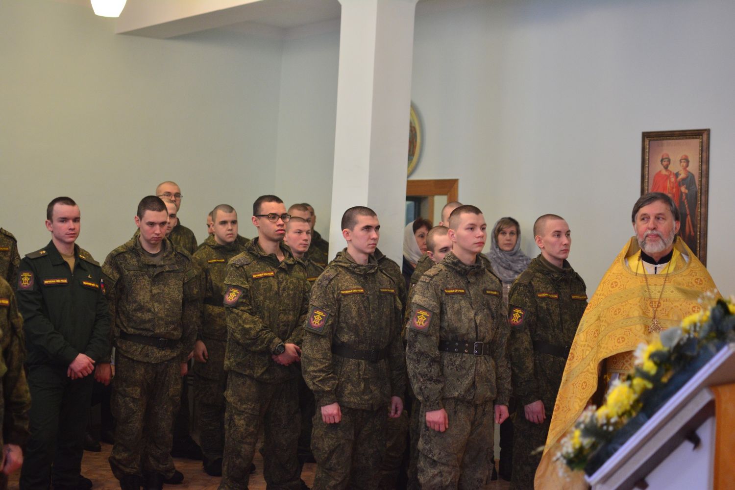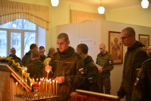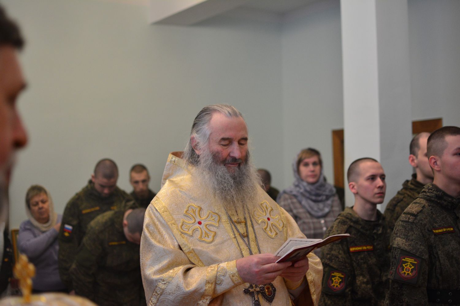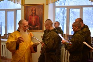 Вот, сегодня за богослужением вы все причастились, соединившись с Господом. Это древняя традиция. Воины всегда, даже находясь в отдалении от Родины, от храмов, всегда перед любыми своими действиями очищали душу покаянием, соединялись с Господом в таинстве Святого Причащения, и Господь всегда даровал им победу. Не случайно мы называем российское воинство победоносным. И сегодня мы все вместе молились о наших воинах, которые находятся сейчас в Малороссии, просили, чтобы Господь даровал им крепость духа во исполнение своего воинского долга и защиты Отечества. А о тех, которые положили свои жизни за Святую Русь, мы просили, чтобы Господь учинил их души в Царствии Небесном и даровал им жизнь вечную.