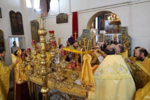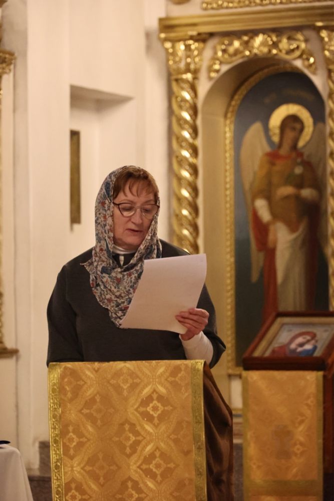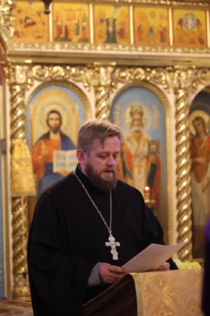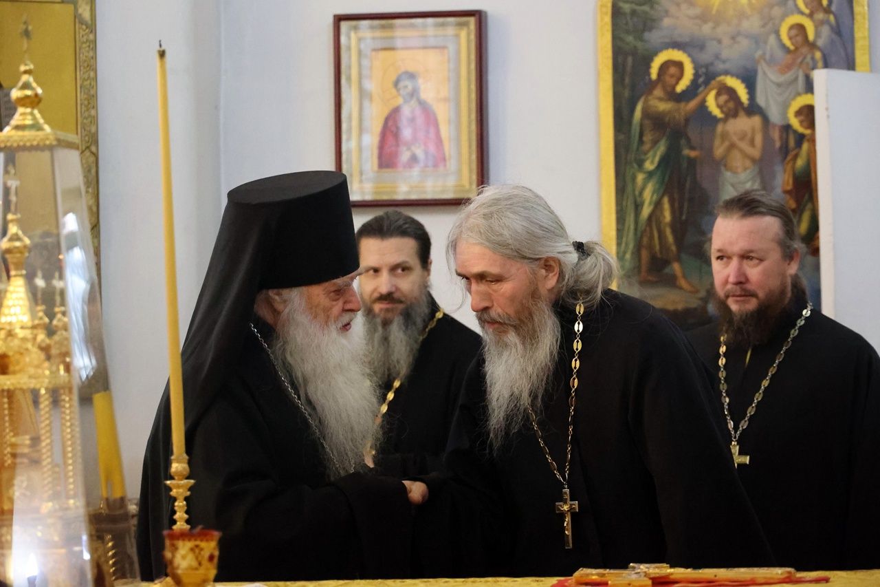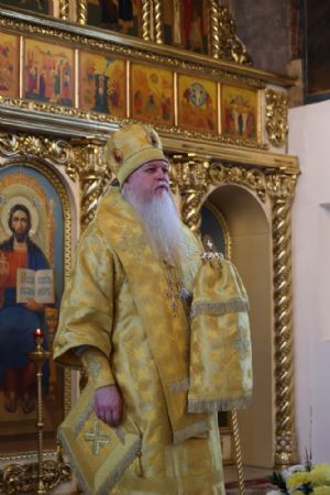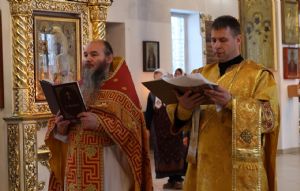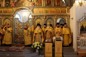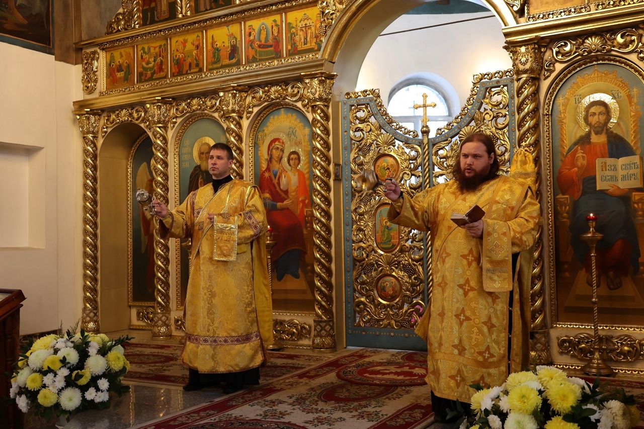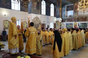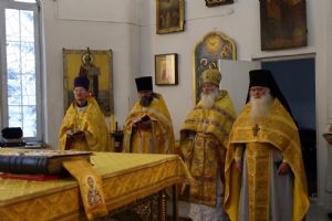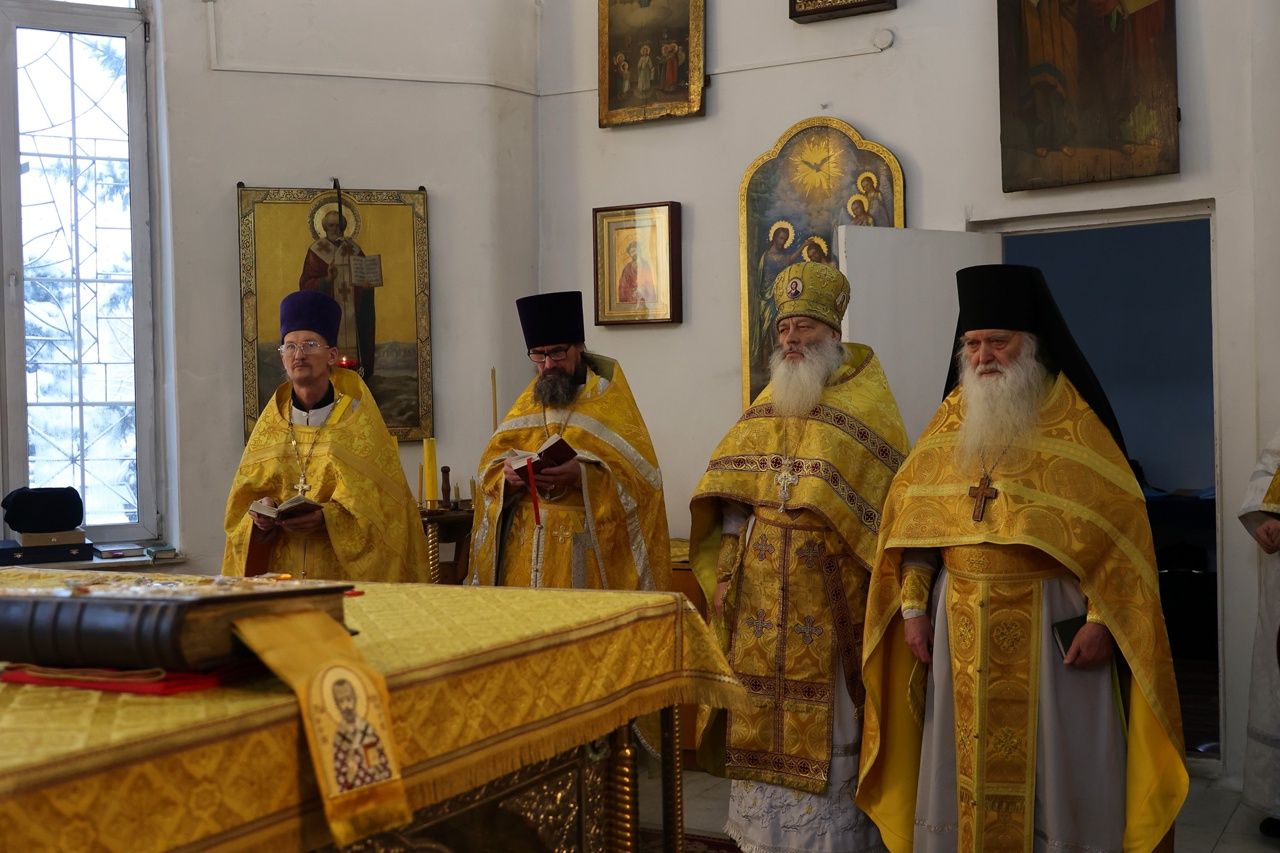 Его Преосвященству сослужили священнослужители Волжской епархии, прибывшие для совместной молитвы перед участием в епархиальном собрании. Песнопения исполнял архиерейский хор.