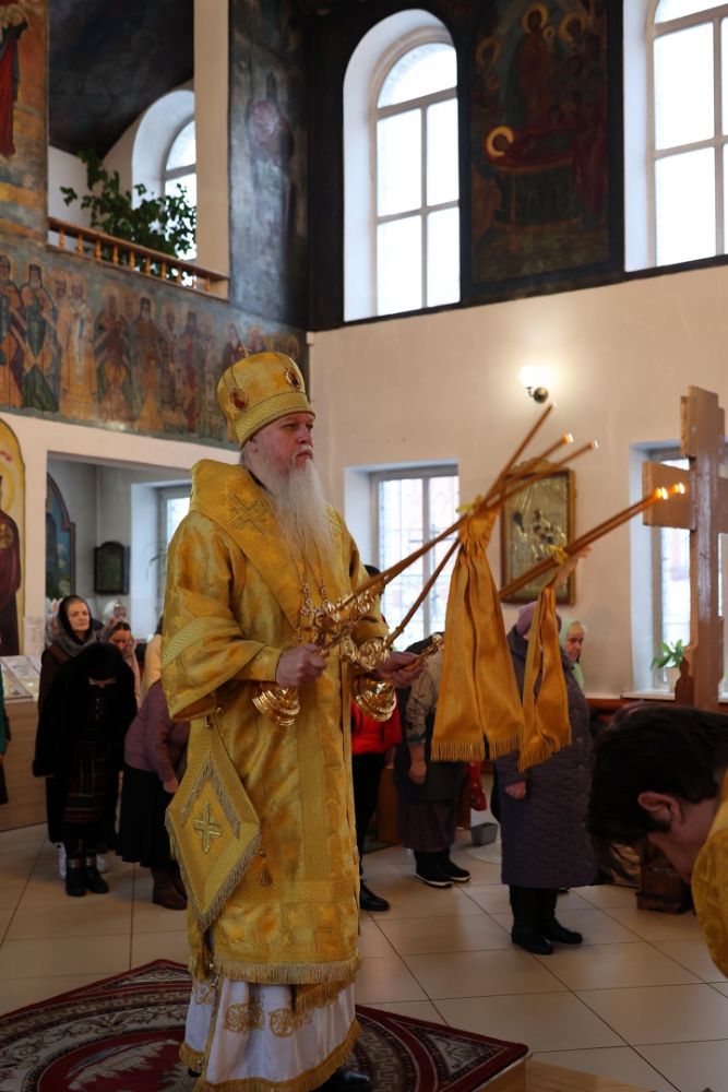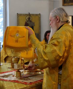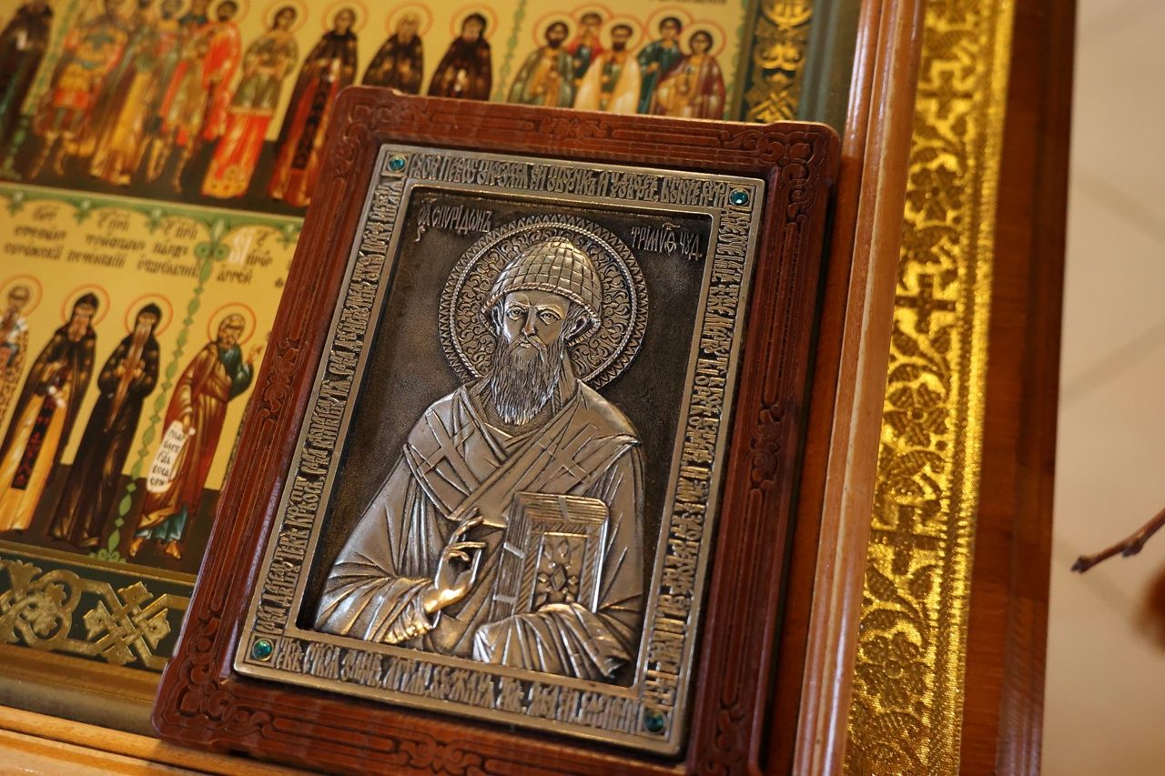 В завершение Литургии епископ Феофан обратился к верующим с архипастырским словом, рассказав о житии одного из самых почитаемых святых – святителя Спиридона, епископа Тримифунтского, память которого Церковь празднует в этот день. По его молитвам совершалось множество чудес, одно из которых произошло на Первом Вселенском Соборе. Толкуя догмат о Пресвятой Троице, святитель Спиридон сжал в руке кирпич, и вверх взметнулся огонь, вниз потекла вода, а в руке осталась глина – наглядно продемонстрировав три стихии, из которых состоял кирпич. И на иконах святителя Спиридона часто изображают с этим чудом.