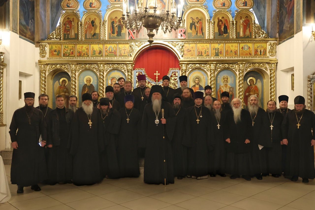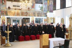 После богослужения состоялось епархиальное собрание под председательством епископа Волжского и Сернурского Феофана, в котором приняли участие сотрудники отделов епархии, приходское духовенство и миряне.