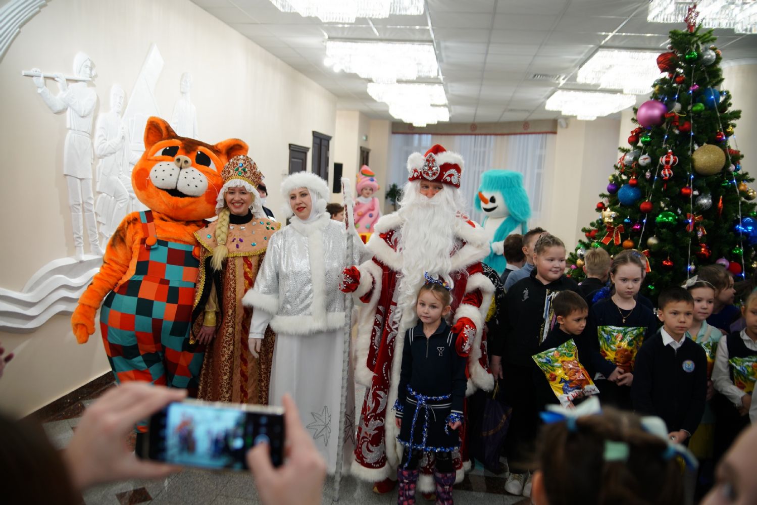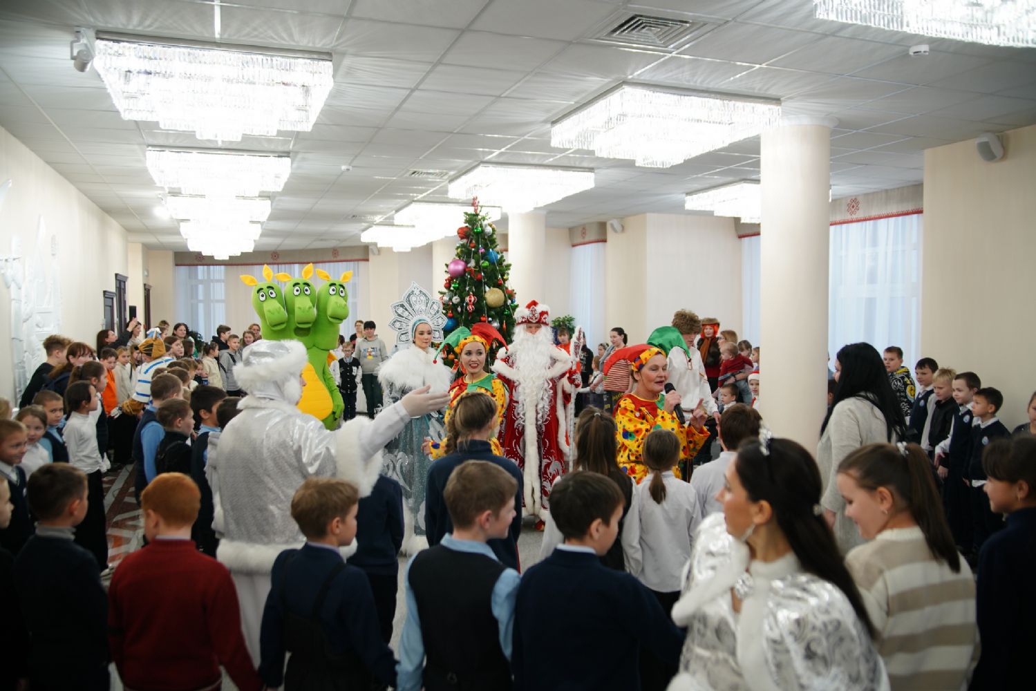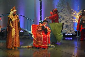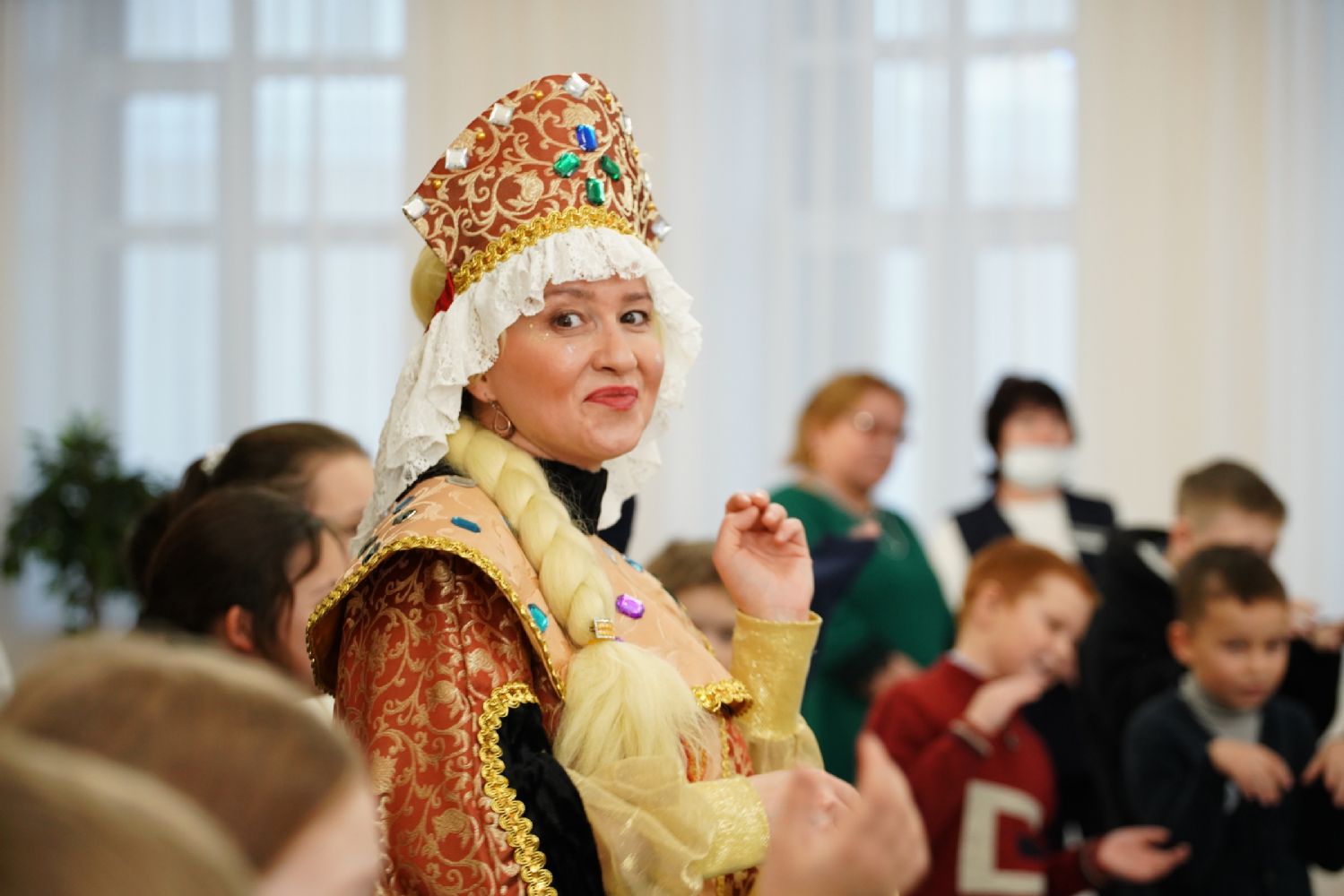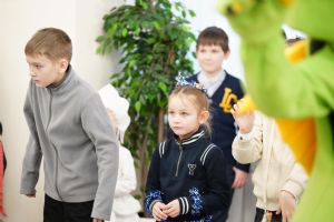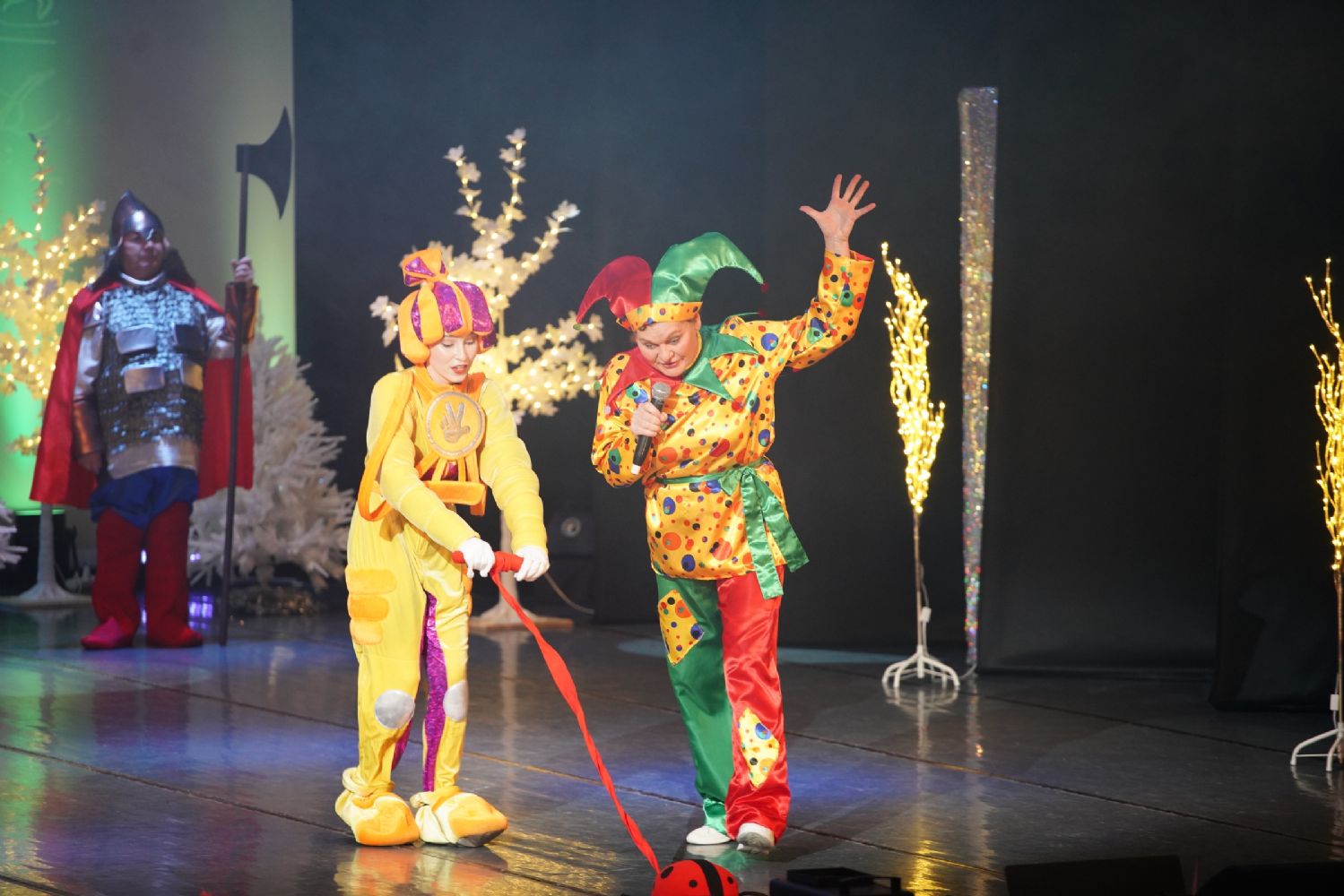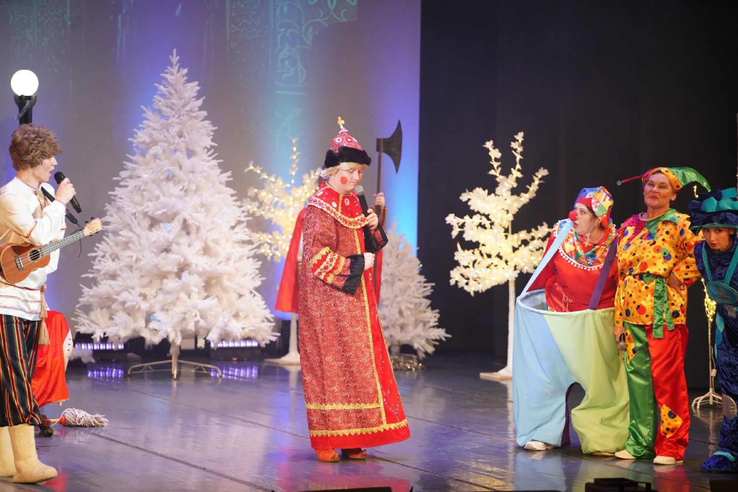 Родители с детьми приняли участие в новогодней программе для школьников и детей «Время сказочных затей». Это увлекательное театрализованное представление, в основе сюжета кторого история о Царе-Горохе и его дочери Царевне-Несмеяне – ее надо было обязательно рассмешить. В спектакле множество сказочных и фольклорных персонажей – Золушка, Емеля, Баба-Яга, Оловянный солдатик, Гулливер, Снеговик и, конечно, Дед Мороз и Снегурочка. В сюжет вплетены яркие песенные и танцевальные номера в исполнении ведущих коллективов и солистов филармонии.