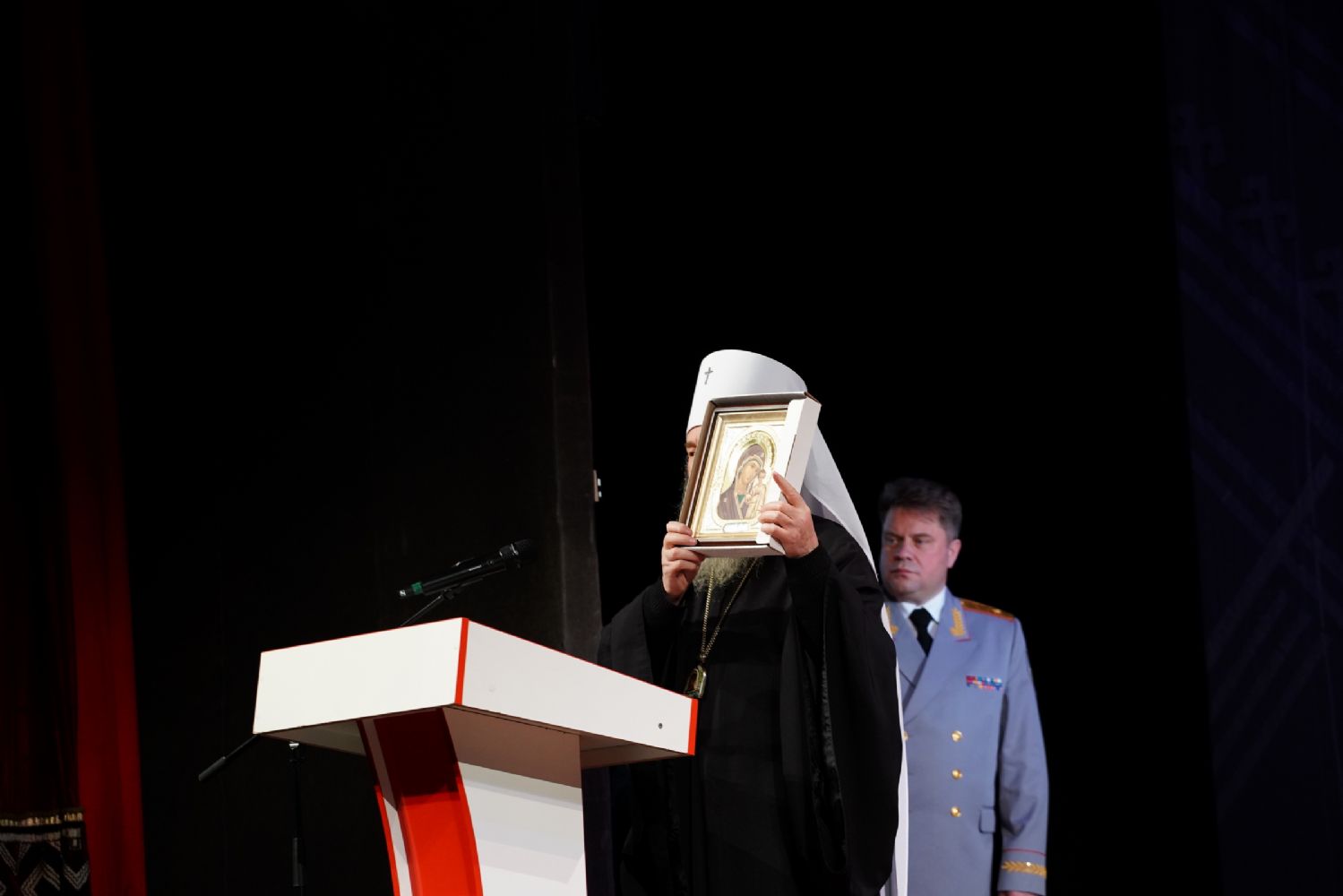 На молитвенную память владыка Иоанн вручил начальнику ГУ МЧС России по РМЭ Виктору Шангину икону Пресвятой Богородицы "Казанская".