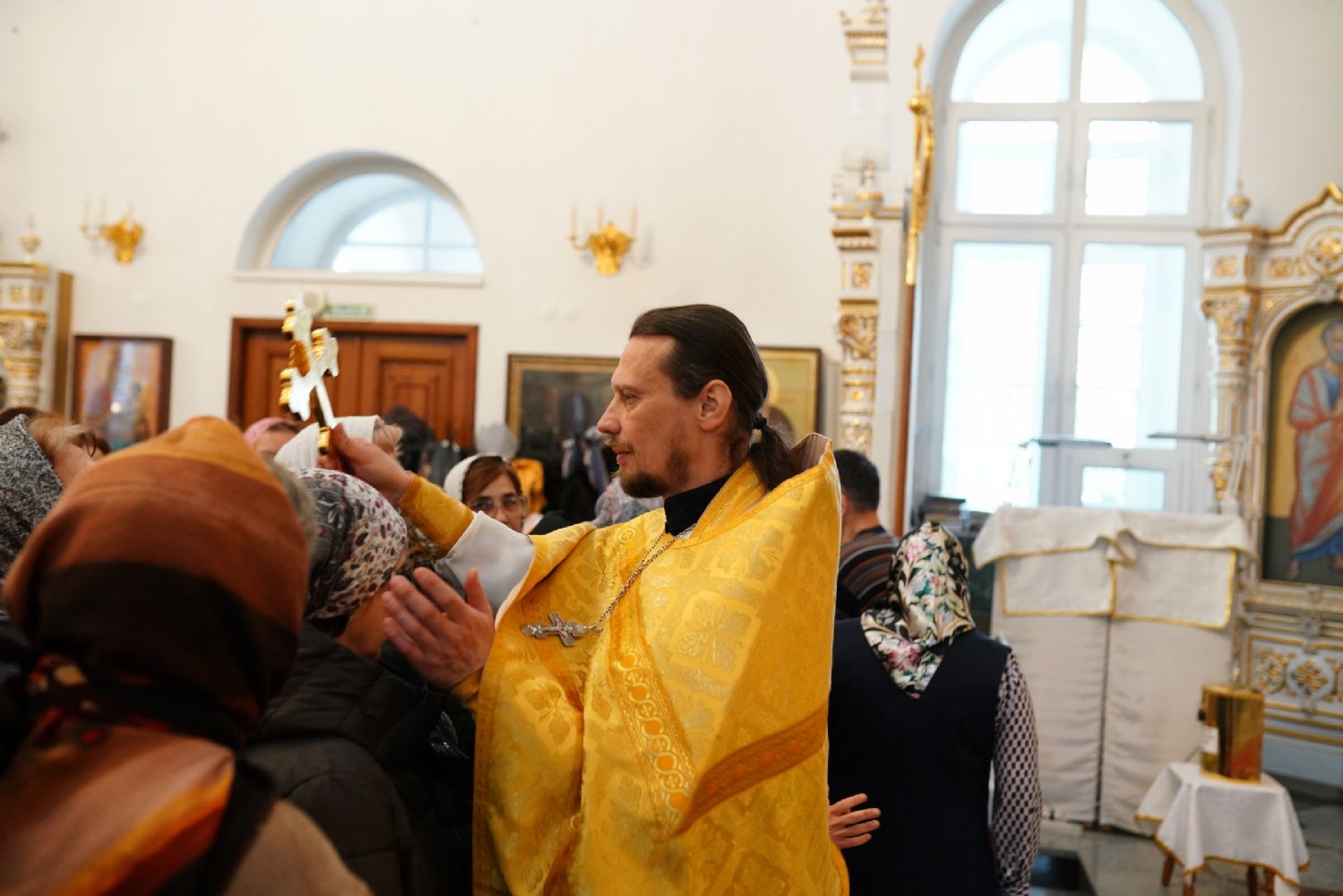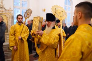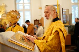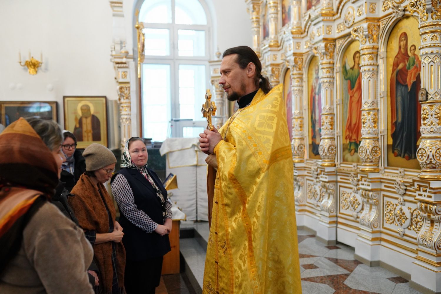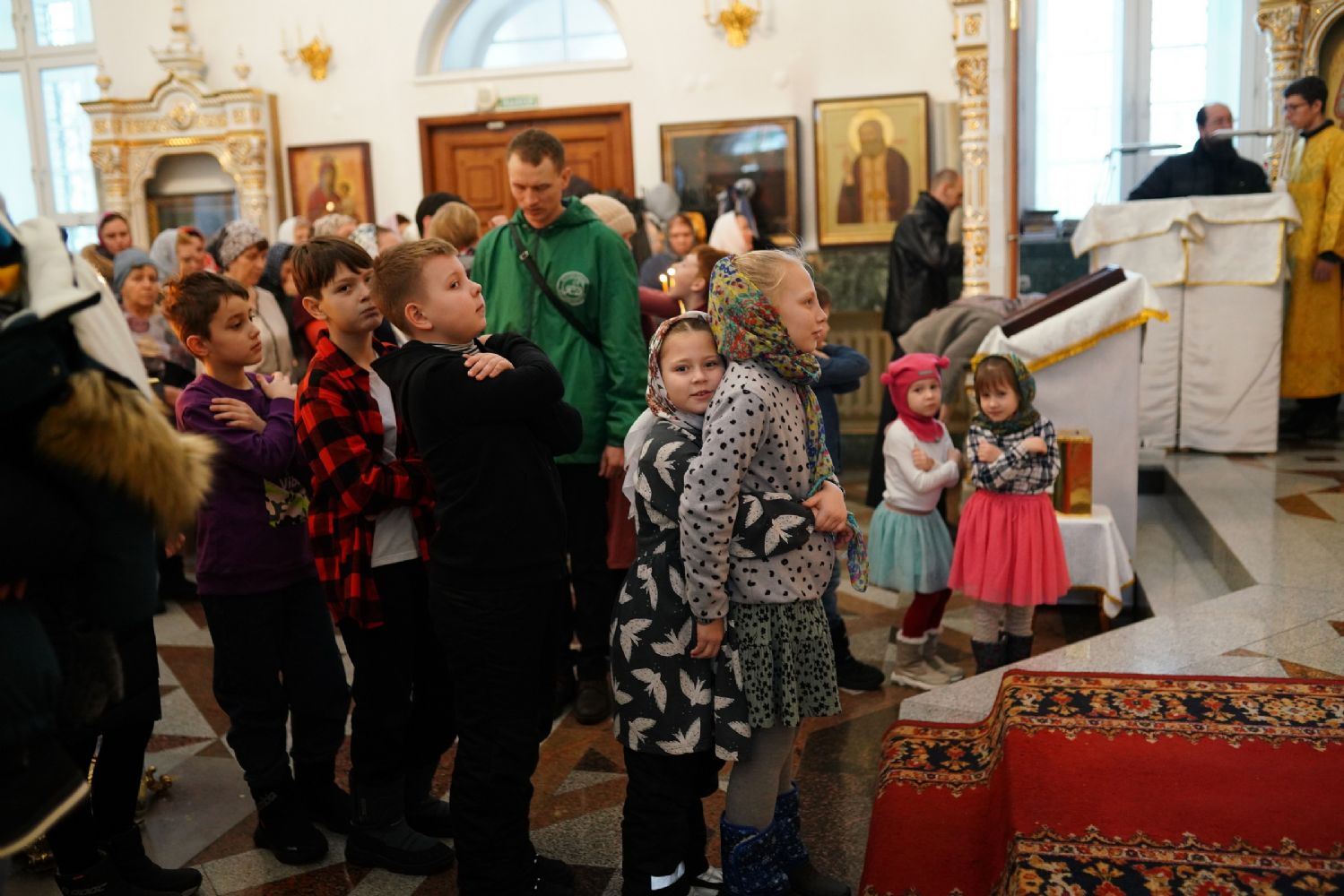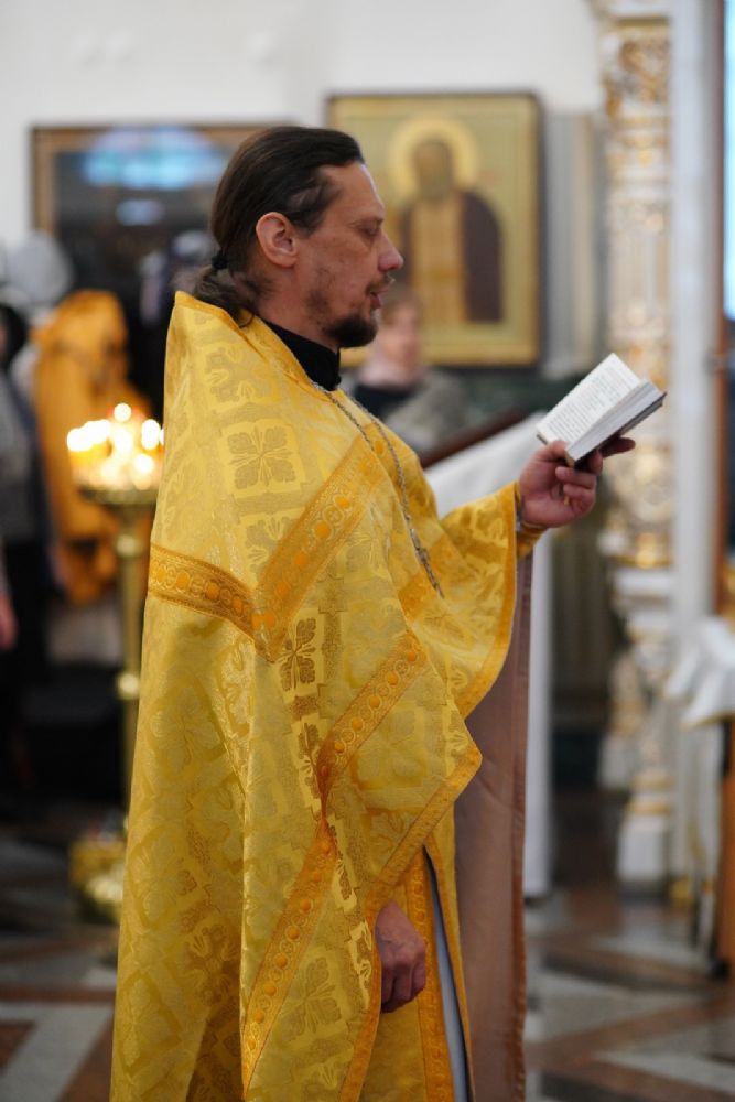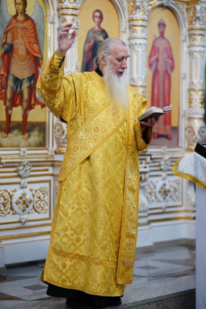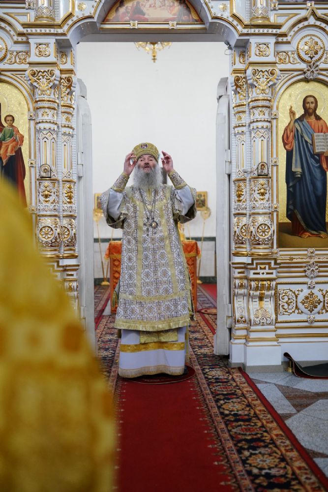 Архипастырю сослужили настоятель собора иерей Андрей Кочаков, протодиакон Михаил Козловский и клирик собора диакон Алексий Кузнецов. Песнопения исполнял хор собора под управлением Алисы Вылегжаниной.