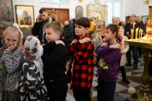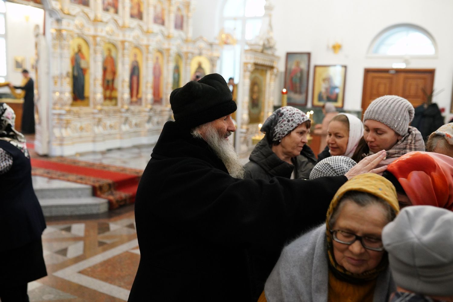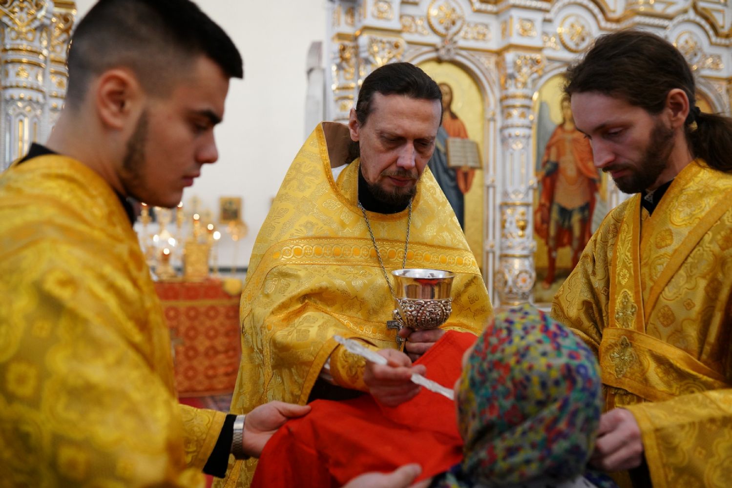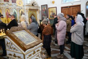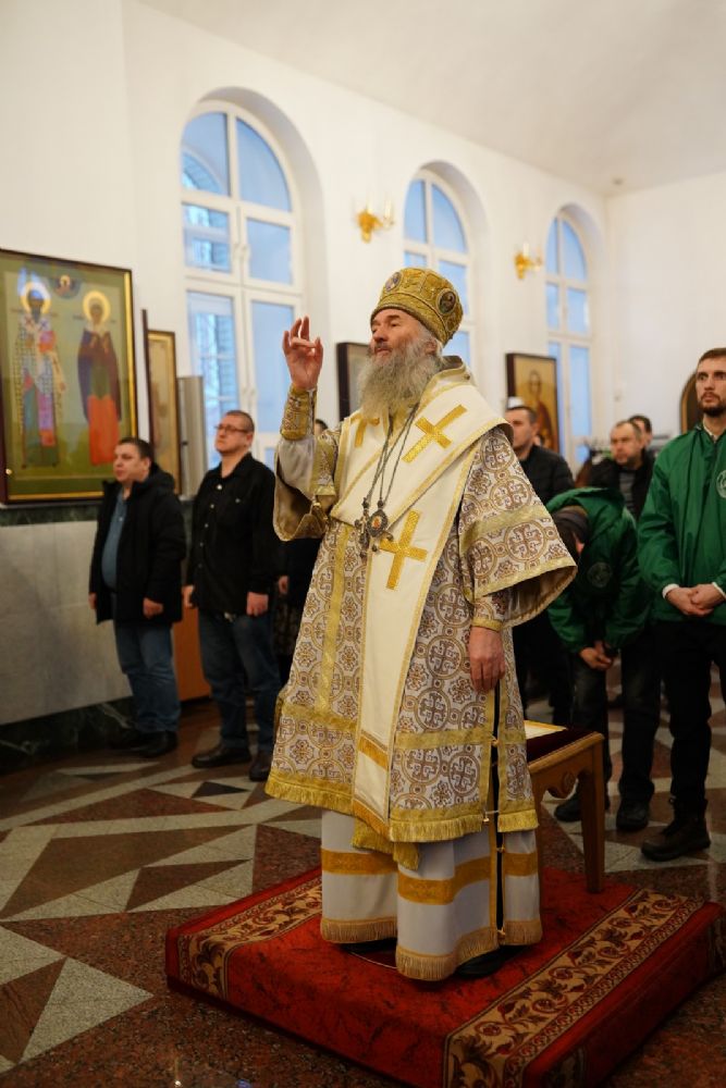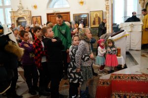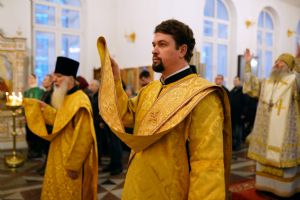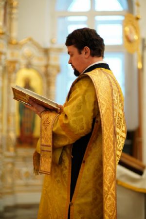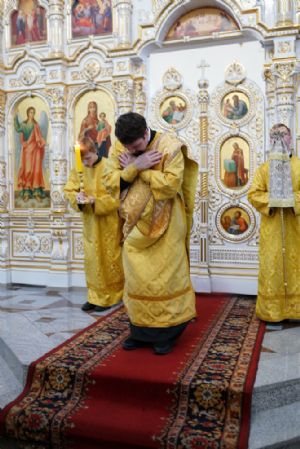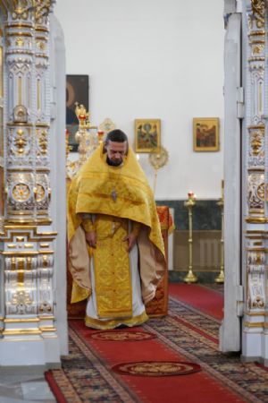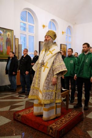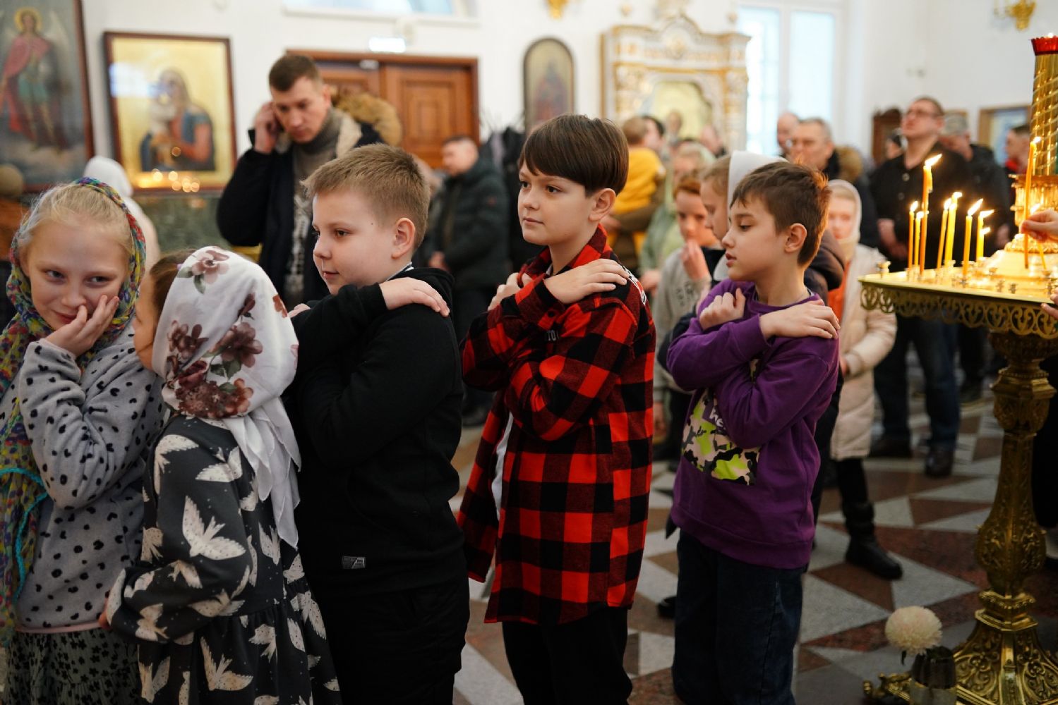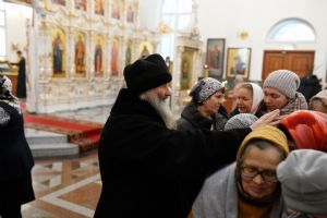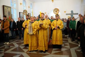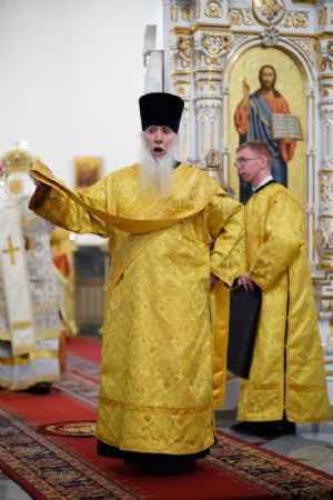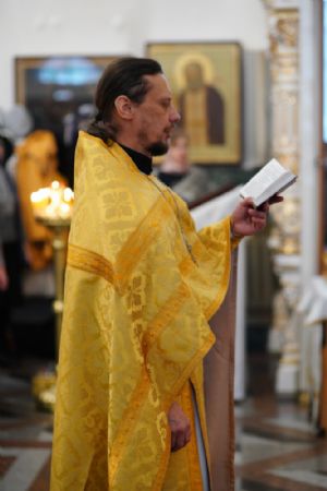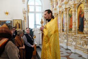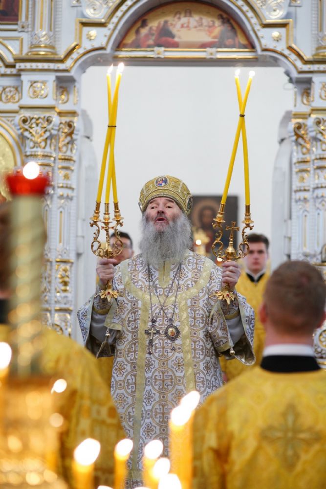 Архипастырю сослужили настоятель собора иерей Андрей Кочаков, протодиакон Михаил Козловский и клирик собора диакон Алексий Кузнецов. Песнопения исполнял хор собора под управлением Алисы Вылегжаниной.