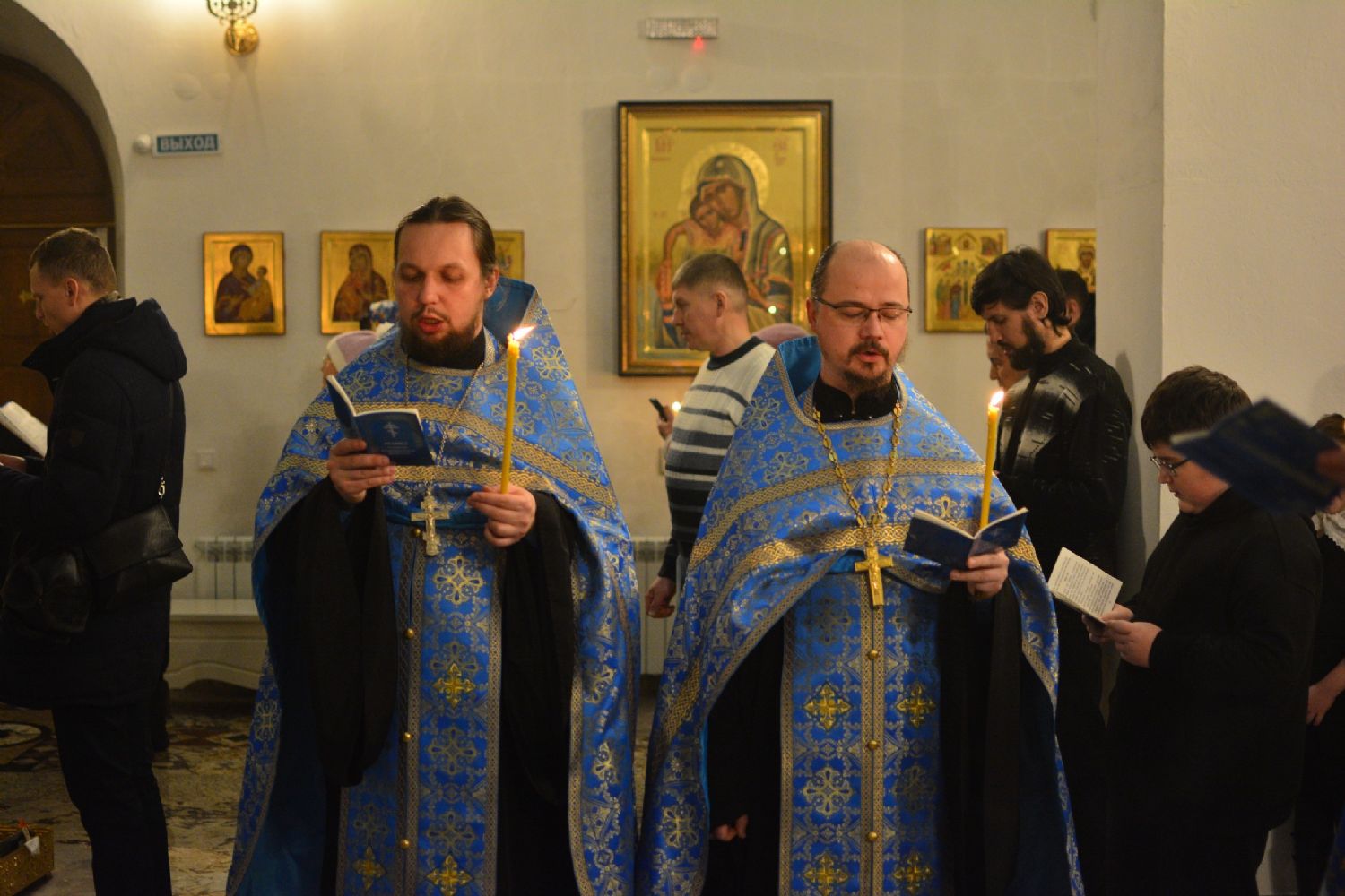 Вечером 31 декабря митрополит Йошкар-Олинский и Марийский Иоанн совершил вечерню с акафистом Пресвятой Богородице в храме иконы Божией Матери «Всех скорбящих Радость» в микрорайоне Тарханово г. Йошкар-Олы.