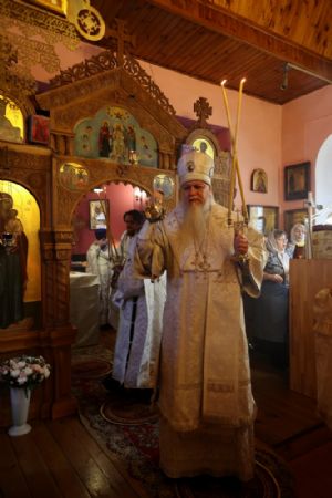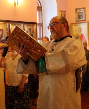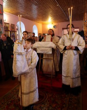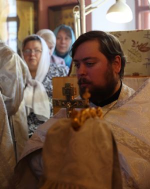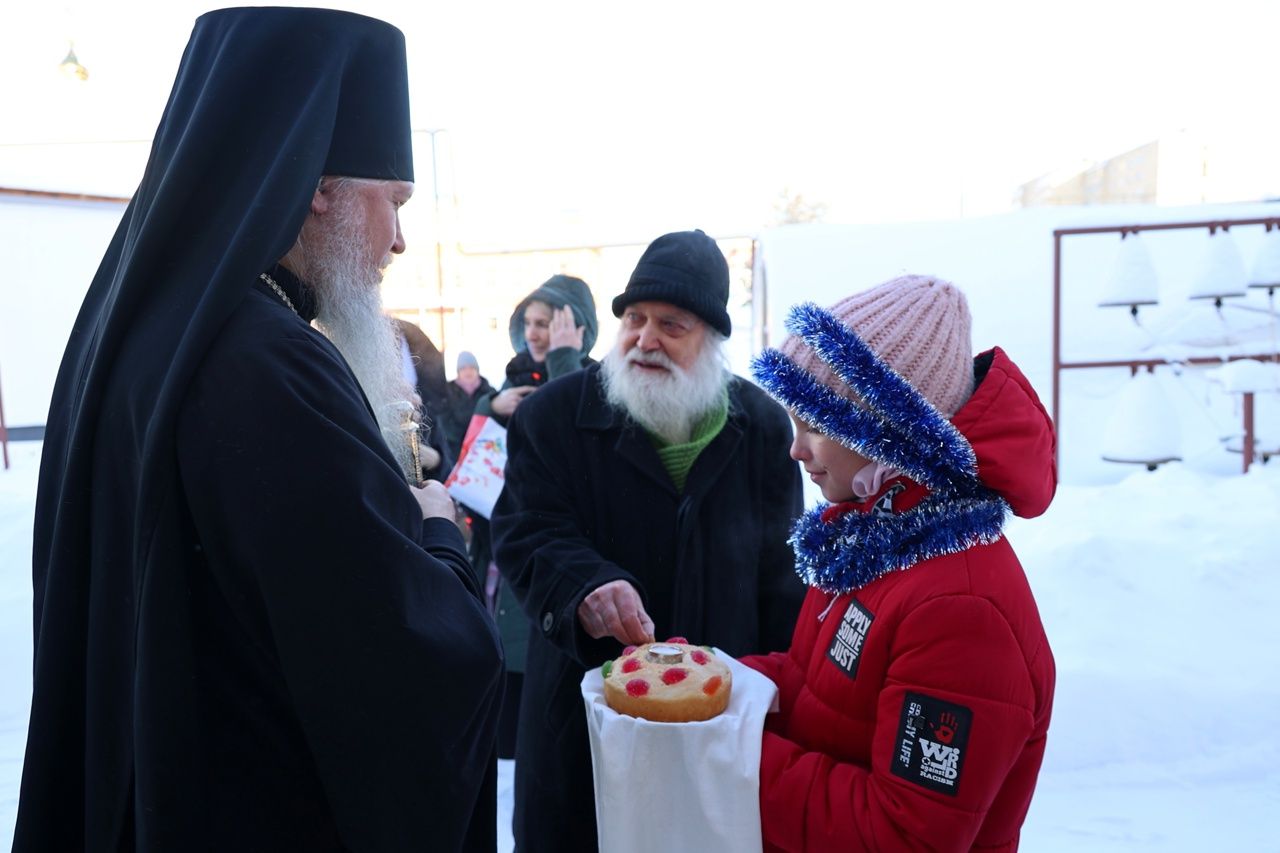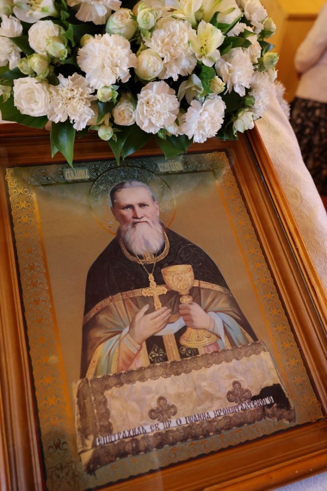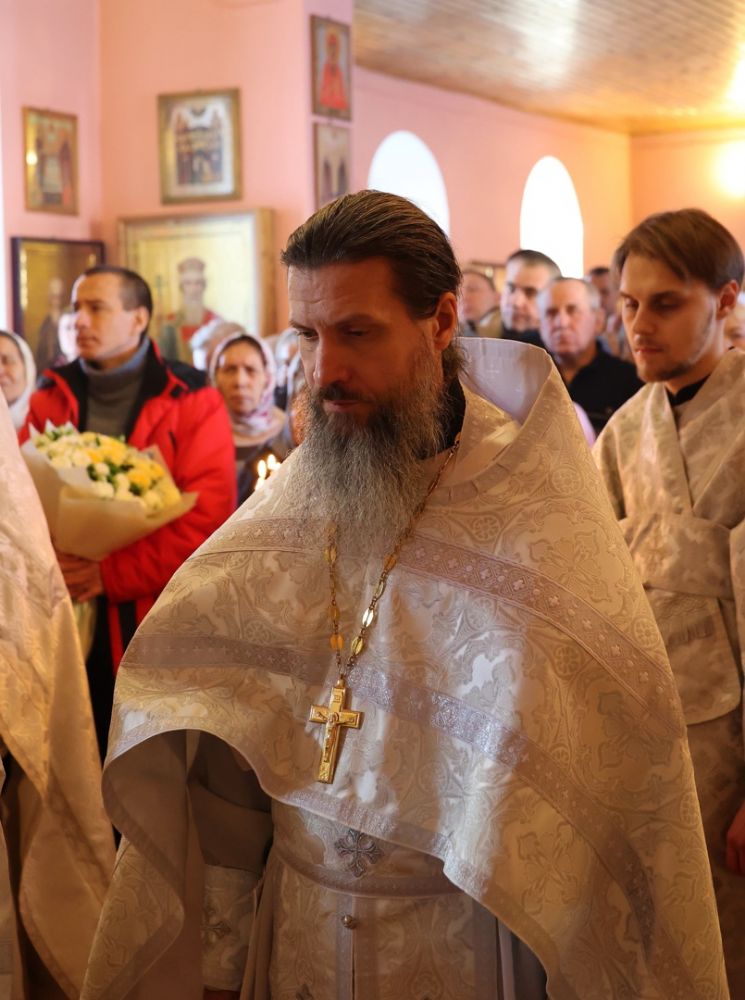 По завершении Литургии епископ Феофан обратился к собравшимся с архипастырским словом, рассказав о житии празднуемого святого – праведного Иоанна Кронштадского.