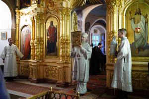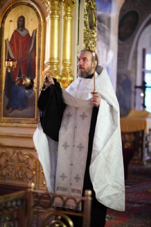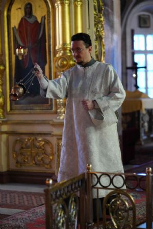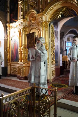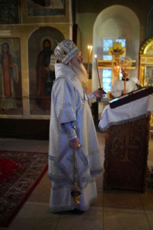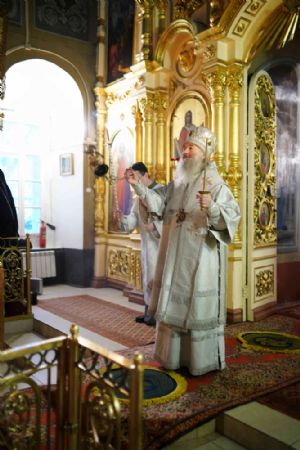 Владыке сослужили секретарь Йошкар-Олинского епархиального управления иеромонах Серафим (Пасанаев), клирики храма иерей Сергий Асланов и протодиакон Михаил Козловский. Песнопения исполнял хор храма.