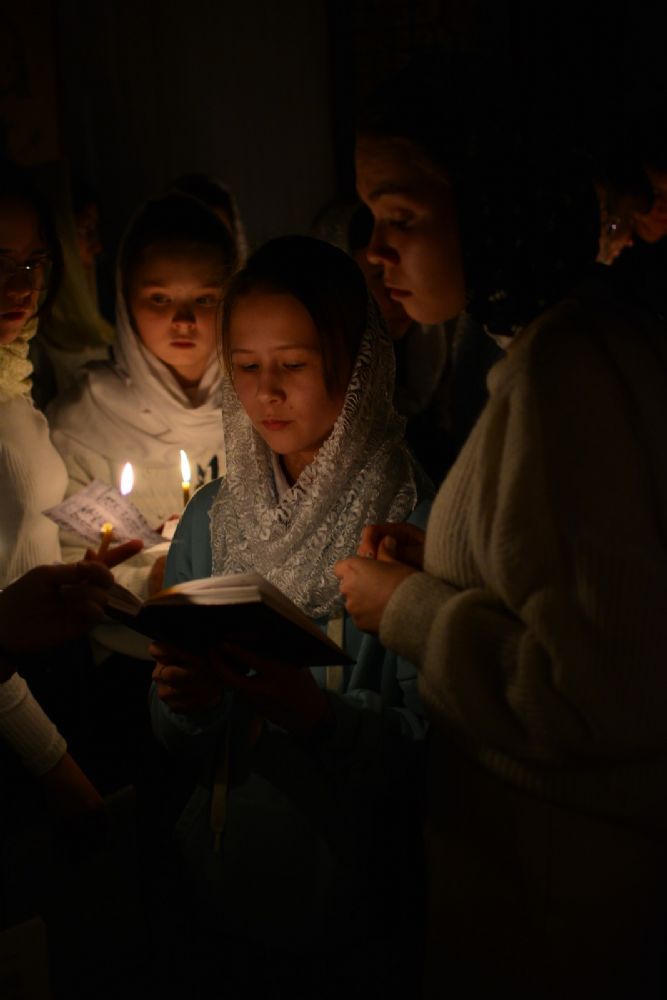 Все чтения и песнопения малого повечерия и утрени исполняли певчие детско-юношеского хора. Специально для лучшего освоения ими порядка и особенностей богослужения владыка Иоанн регулярно проводит в домовом храме такие богослужебные практики, которые приносят певчим большую пользу.