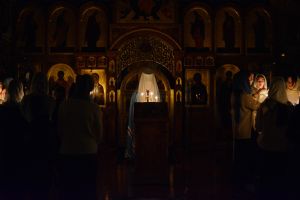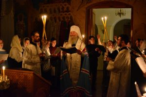 Владыке сослужил протодиакон Михаил Козловский. Песнопения исполнял антифонно детско-юношеский хор «Благовест» под руководством младших регентов Анны Поглазовой, Дарьи Поглазовой и Марии Мельниковой.