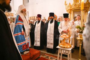 Владыке сослужили секретарь Йошкар-Олинского епархиального управления иеромонах Серафим (Пасанаев), настоятель храма иерей Александр Лоскутов, клирики храма иереи Никита Смирнов, Димитрий Дьяков, Евгений Симаков и диакон Димитрий Кудряшов, а также протодиакон Михаил Козловский.