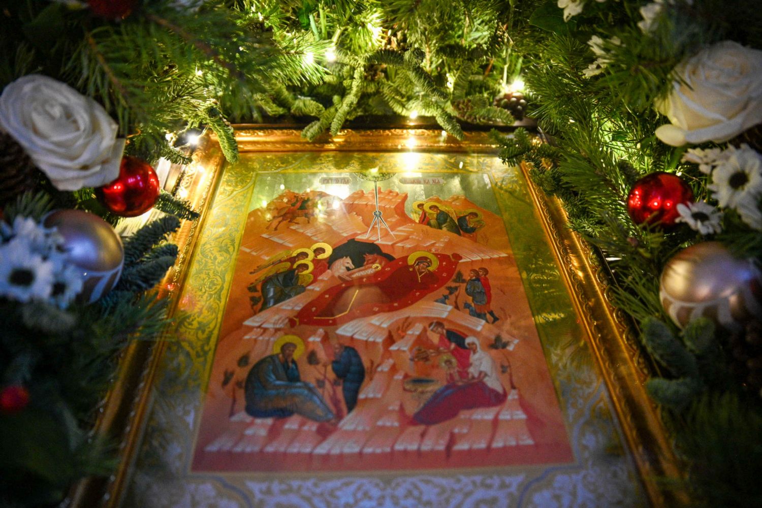 Всенощное бдение под Рождество Христово состоит из великого повечерия с литией, утрени и 1-го часа. Перед началом службы звучит праздничный колокольный звон. Радостные рождественские песнопения в течение всего богослужения приветствуют пришедшего в мир Богомладенца Христа и прославляют Его Пречистую Матерь.