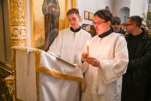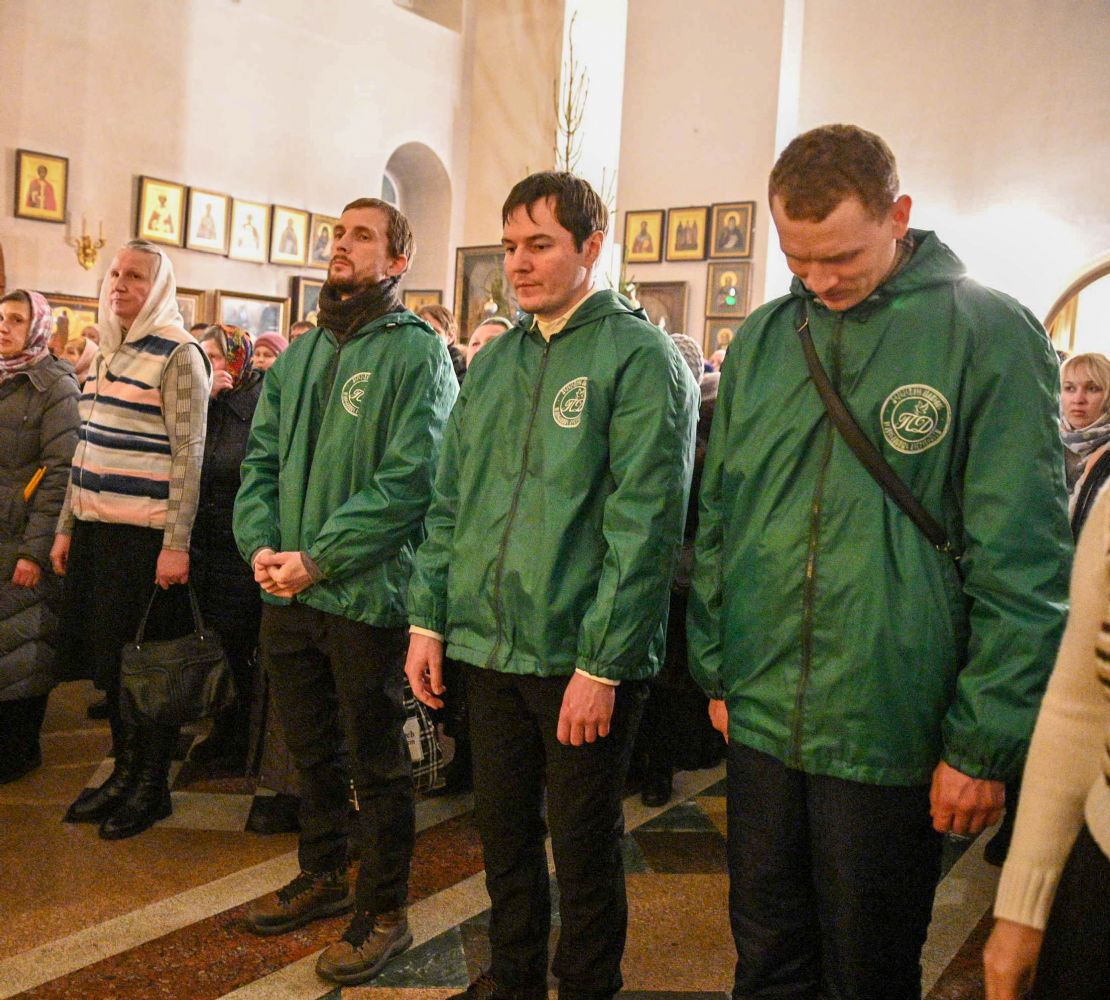 Песнопения исполнял хор храма под руководством регента Наталии Поповой. За богослужением помогали Православные добровольцы.