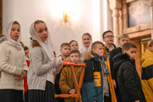 Владыке сослужили секретарь Йошкар-Олинского епархиального управления иеромонах Серафим (Пасанаев), ключарь собора протоиерей Сергий Поглазов, клирики собора иереи Никифор Захаров и Евгений Самойлов, диаконы Андрей Дружинин и Артемий Бобоч, а также протодиакон Михаил Козловский. Пел детско-юношеский хор «Благовест» под руководством регента Татьяны Черновой. Часть богослужебных песнопений исполнял хор духовенства под управлением иерея Евгения Самойлова.
