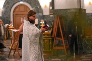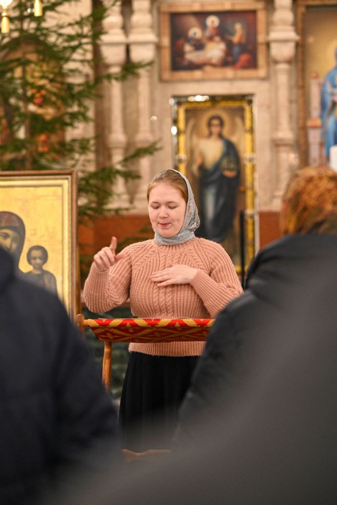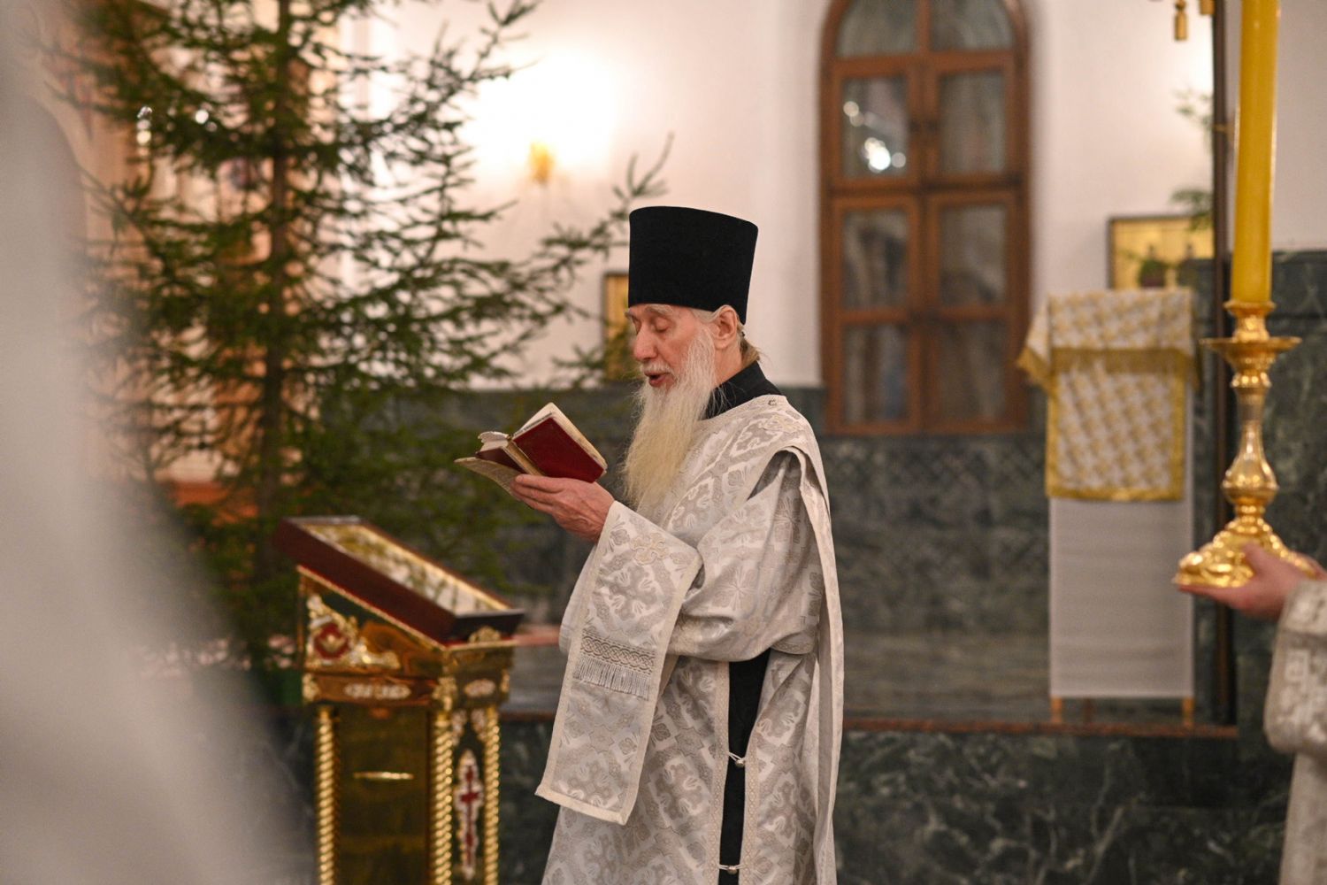 По запричастном стихе иеромонах Серафим зачитал Рождественское послание Патриарха Московского и всея Руси Кирилла верным чадам Русской Православной Церкви.