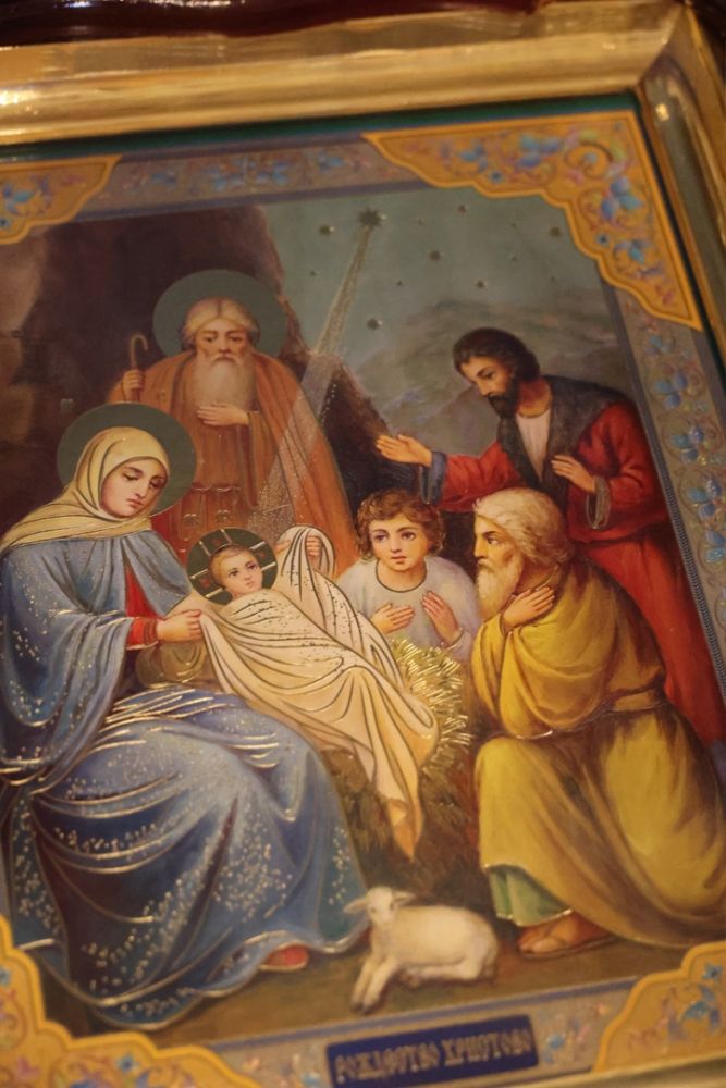 «Сегодня мы с благодарением сердца пришли в храм, чтобы вновь и вновь в молитве обратить свой мысленный взор ко Христу, Который на иконе Рождества Христова изображен Богомладенцем. Эта икона напоминает нам о том, что более 2000 лет назад Бог изволил ради человек и нашего ради спасения прийти в этот временный земной мир, поврежденный грехом. Он пришел, чтобы освятить этот мир, призвать людей к покаянию и, добровольно пострадав на Кресте даже до смерти, воскреснуть из мертвых и призвать людей пойти вслед за Собой.