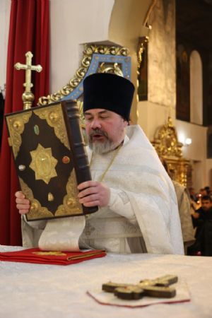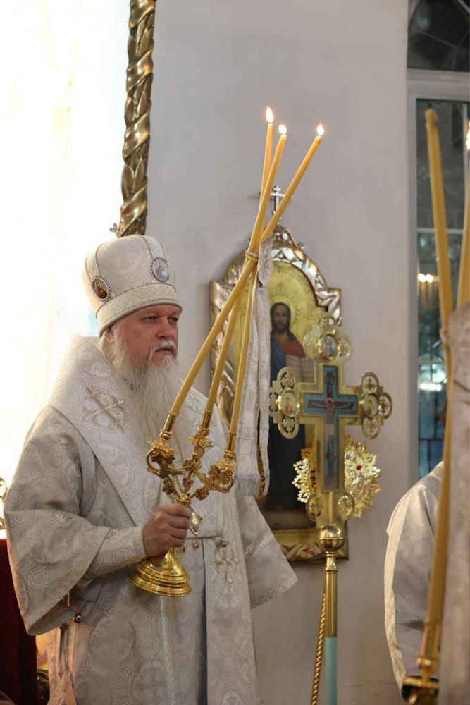 Его Преосвященству сослужило духовенство собора, песнопения исполнял архиерейский хор под управлением Любови Михеевой.