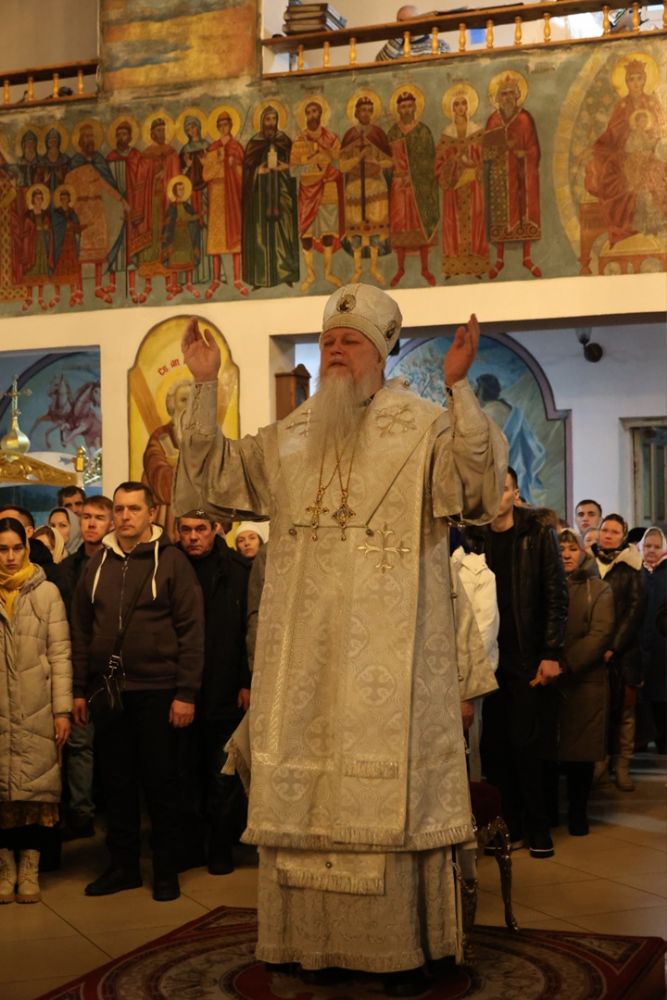 По окончании Литургии епископ Феофан зачитал Рождественское послание Святейшего Патриарха Московского и всея Руси Кирилла и обратился к верующим с архипастырским словом.