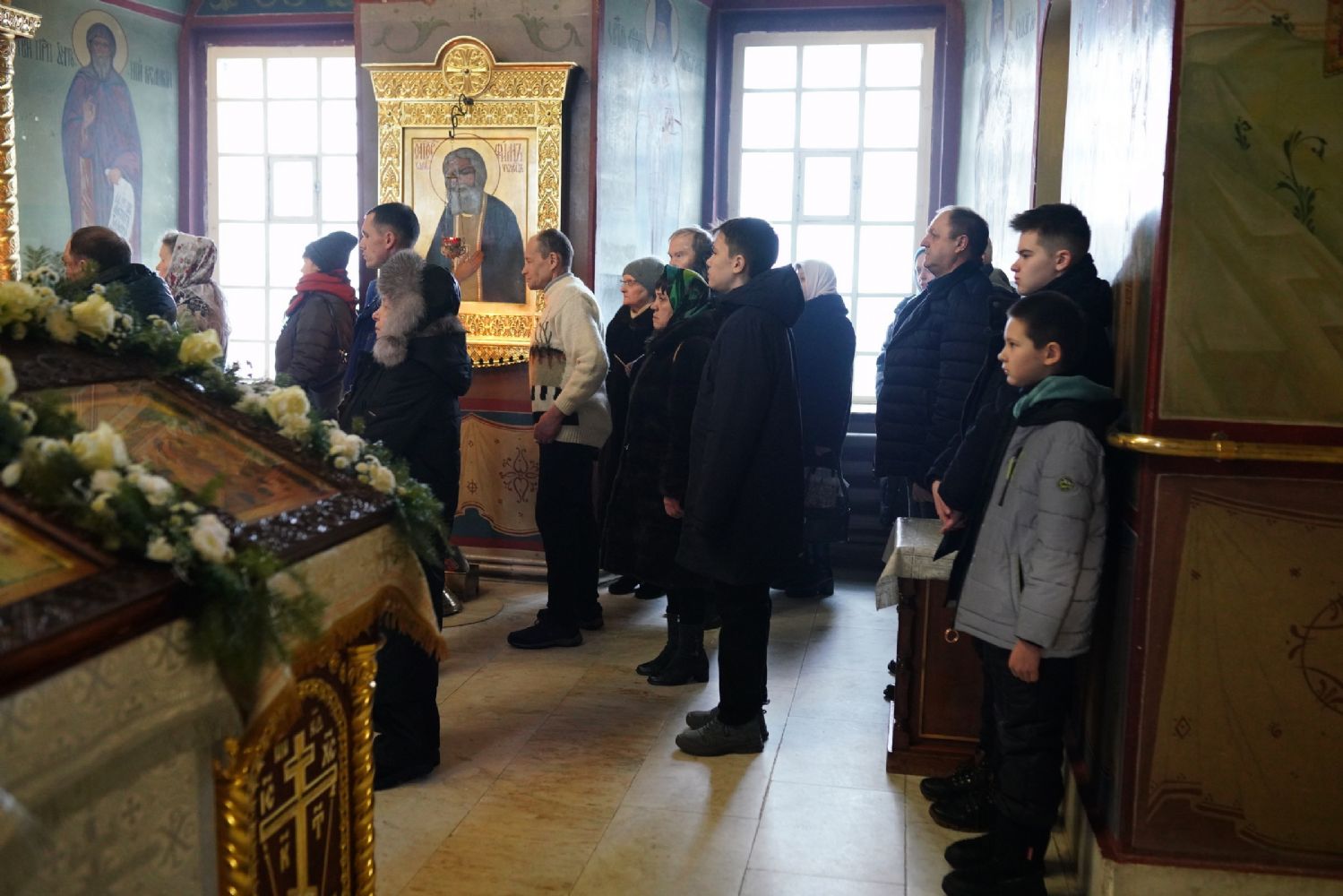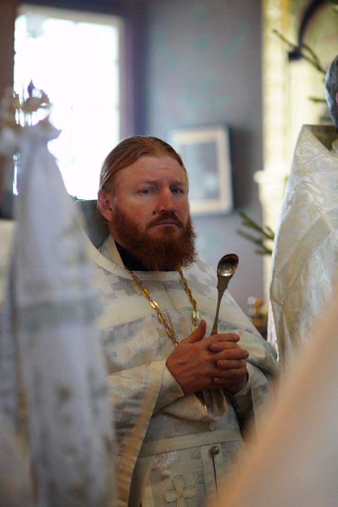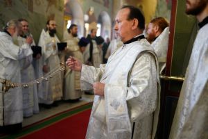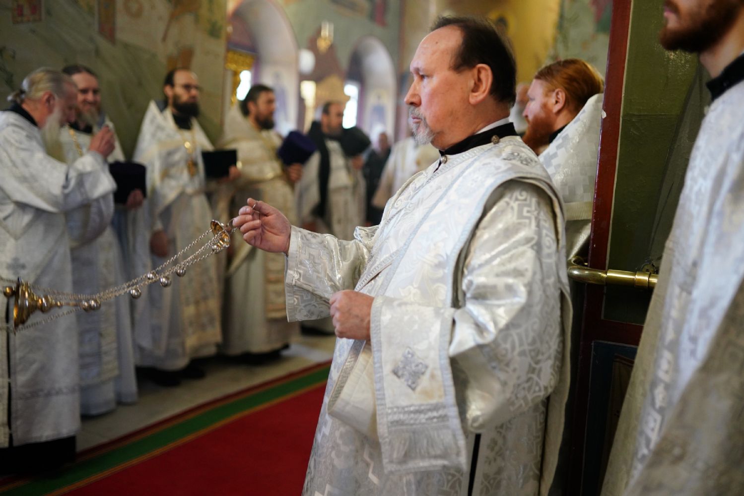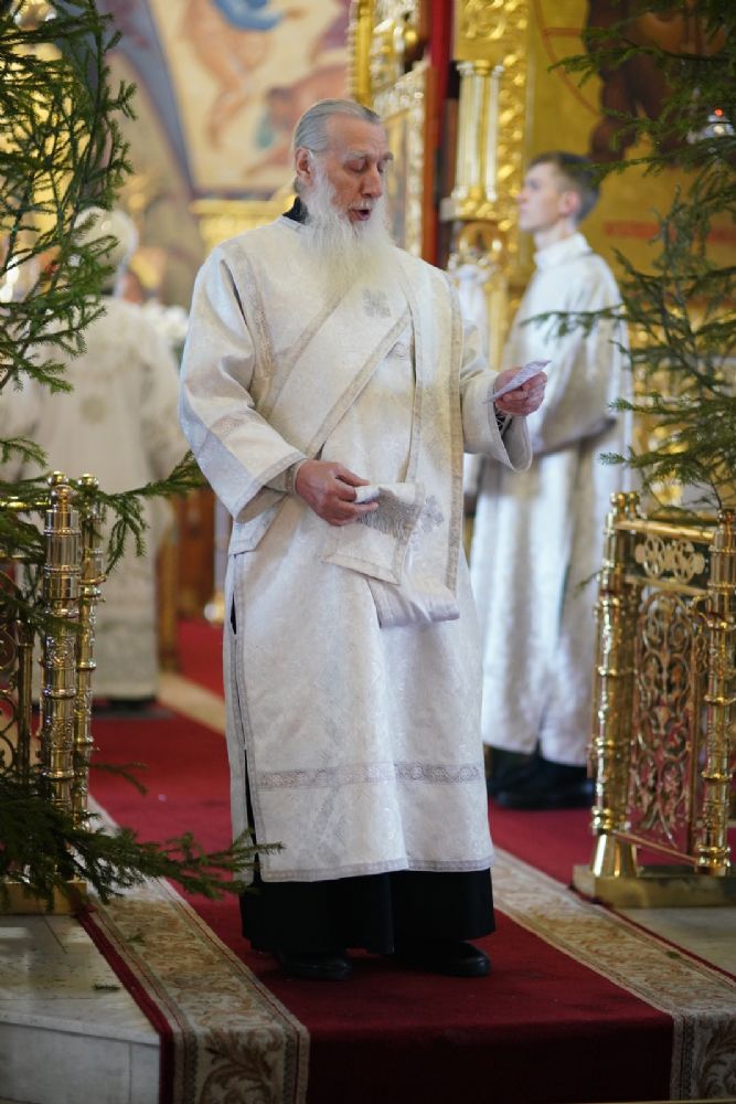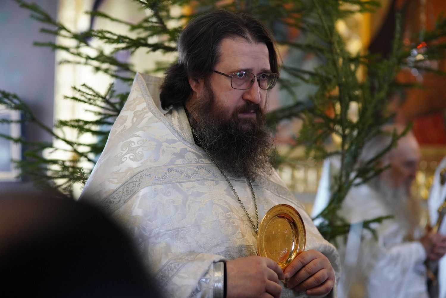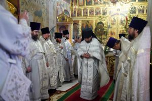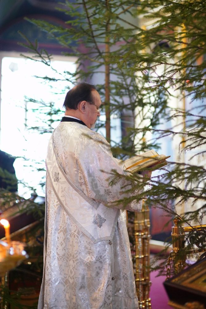 Архипастырю сослужили секретарь Йошкар-Олинского епархиального управления иеромонах Серафим (Пасанаев), настоятель собора протоиерей Евгений Кутырев, благочинный Йошкар-Олинского церковного округа протоиерей Андрей Норкин, клирики собора и протодиакон Михаил Козловский. Песнопения исполнял хор собора под управлением Ангелины Бабиной.