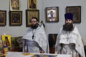 Его Преосвященству сослужили благочинный Волжского церковного округа иерей Иоанн Белинский, настоятель храма протоиерей Евгений Усков, клирик храма иконы Божией Матери «Умягчение злых сердец» д. Полевая иеромонах Нил (Палащенко) и клирик Никольского кафедрального собора г. Волжска диакон Иоанн Захаров. Песнопения исполнял малый состав хора «Благовест» Йошкар-Олинской епархии.