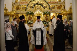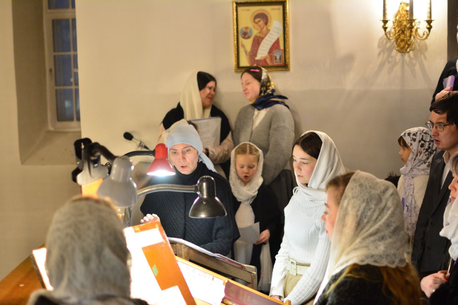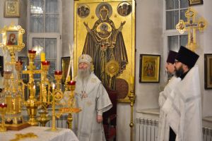 Владыке сослужили настоятель храма иерей Александр Лоскутов, клирики храма иереи Никита Смирнов, Димитрий Дьяков, Евгений Симаков, диакон Димитрий Кудряшов, а также протодиакон Михаил Козловский. Песнопения исполнял хор храма под управлением регента Наталии Поповой, часть песнопений звучала в исполнении детского хора воскресной школы храма.