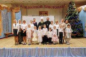 8 января в Православном центре г. Йошкар-Олы прошел рождественский утренник для воспитанников трех воскресных школ – имени священномученика Леонида, Троицкого храма и детско-юношеского хора «Благовест».