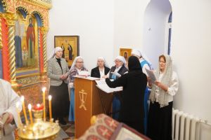 За праздничной вечерней митрополиту Йошкар-Олинскому и Марийскому Иоанну сослужили духовник сестричества милосердия иерей Константин Домрачев, сотрудник епархиального отдела социального служения и церковной благотворительности иерей Александр Староверов и протодиакон Михаил Козловский. Песнопения исполнял хор сестричества под управлением Елены Яровиковой.