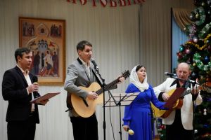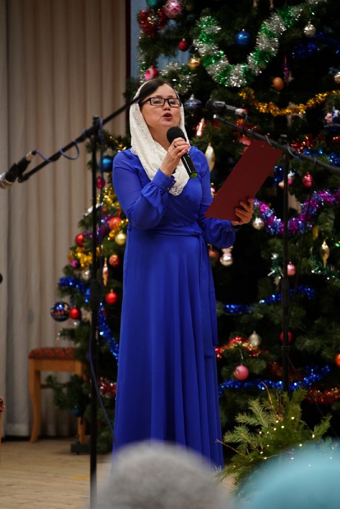 Концертная программа, которую вели актриса республиканского ТЮЗа Любовь Купсольцева и артист театра им. Шкетана Алексей Тетерин, началась с выступления хора сестричества под руководством регента Ларисы Максимовой – они исполнили рождественские песни и колядки.