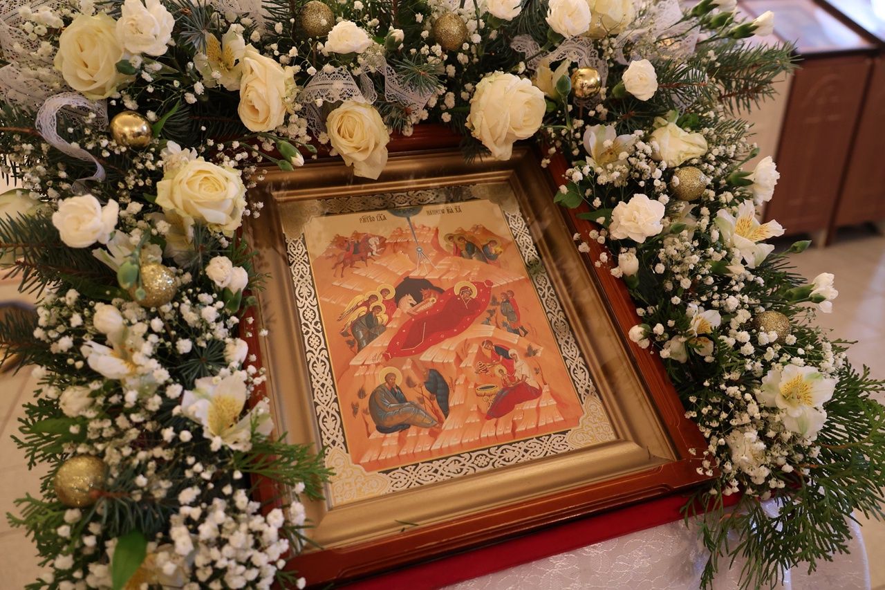 Господь воспринял на себя природу человеческую, чтобы потом добровольно этой природой пострадать на Кресте даже до смерти, искупив тем самым человеческий род от греха, избавив от власти диавола и указав нам путь в вечноблаженную жизнь. Спаситель даровал людям возможность через веру, покаяние и добрые дела вернуться в то соединение с Богом, которое было нарушено когда-то грехом наших прародителей Адама и Евы. Великая милость Божия была явлена в Рождестве Христовом всему человеческому роду. И мы с благодарностью Господу Богу, Его Пречистой Матери, и всем святым, которые молятся у Престола Божия за каждого из нас, предстоим сегодня в храме у святого образа Рождества Христова и мысленно обращаемся к Господу с просьбой даровать нам прощение всех согрешений, исцеление от всех недугов, душевных и телесных, и укрепление в духовной брани, которую надлежит пройти каждому христианину, проходя по тернистому пути земной жизни.