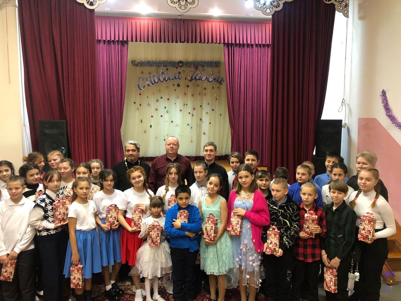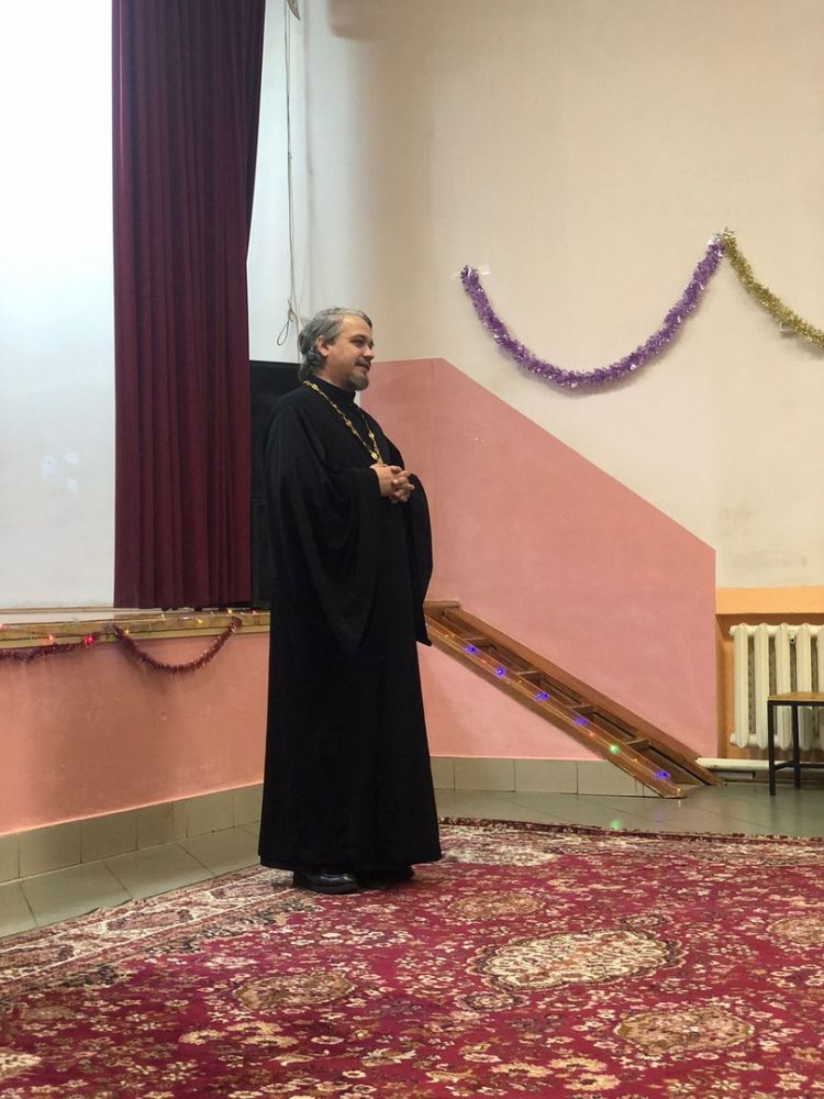 Руководство, педагоги и дети радостно встретили отца Александра и показали праздничный концерт. Батюшка поздравил ребят с Рождеством Христовым, поблагодарил за доставленную радость и вручил всем сладкие подарки.