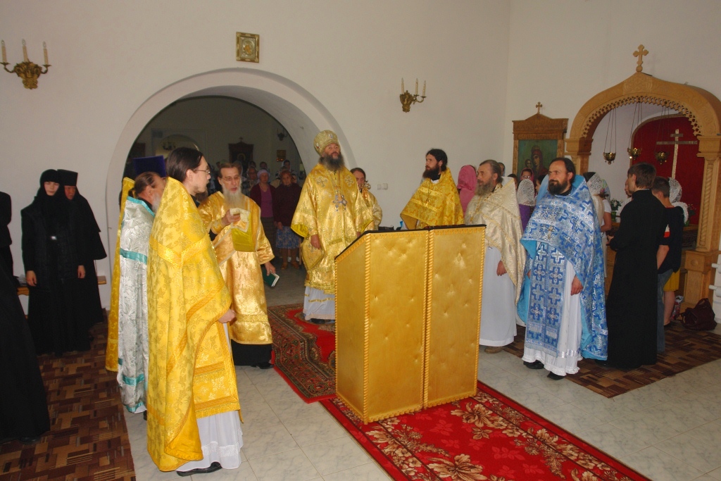 После совершения праздничного молебна в честь святых апостолов Варфоломея и Варнавы архиепископ Иоанн сказал проповедь. В своем слове он призвал матушку настоятельницу быть утешением как для сестер монастыря, так и для всех приходящих в эту святую обитель подобно апостолу Варнаве, имя которого переводится как "сын утешения". Владыка поздравил матушку, вручив богородичную просфору и образ Спасителя.