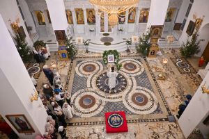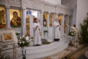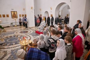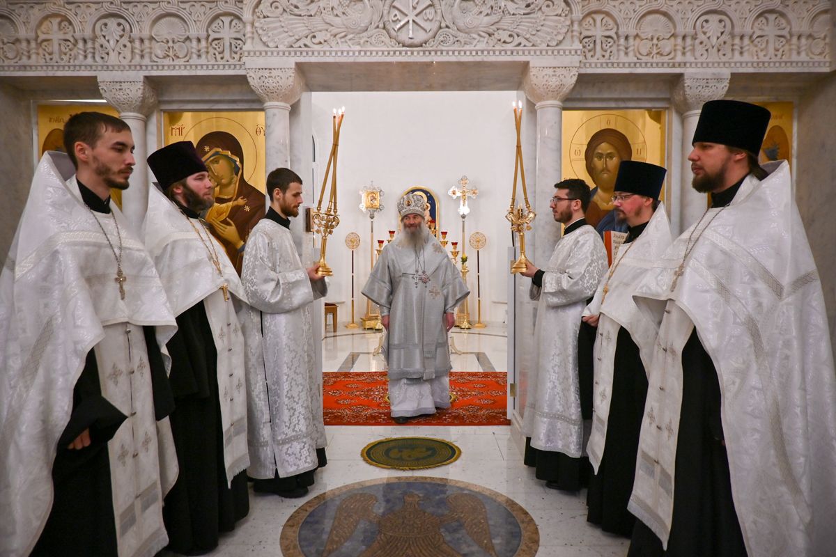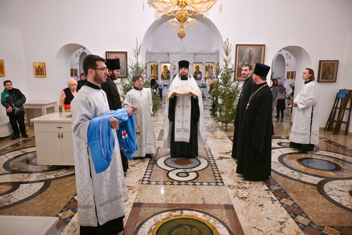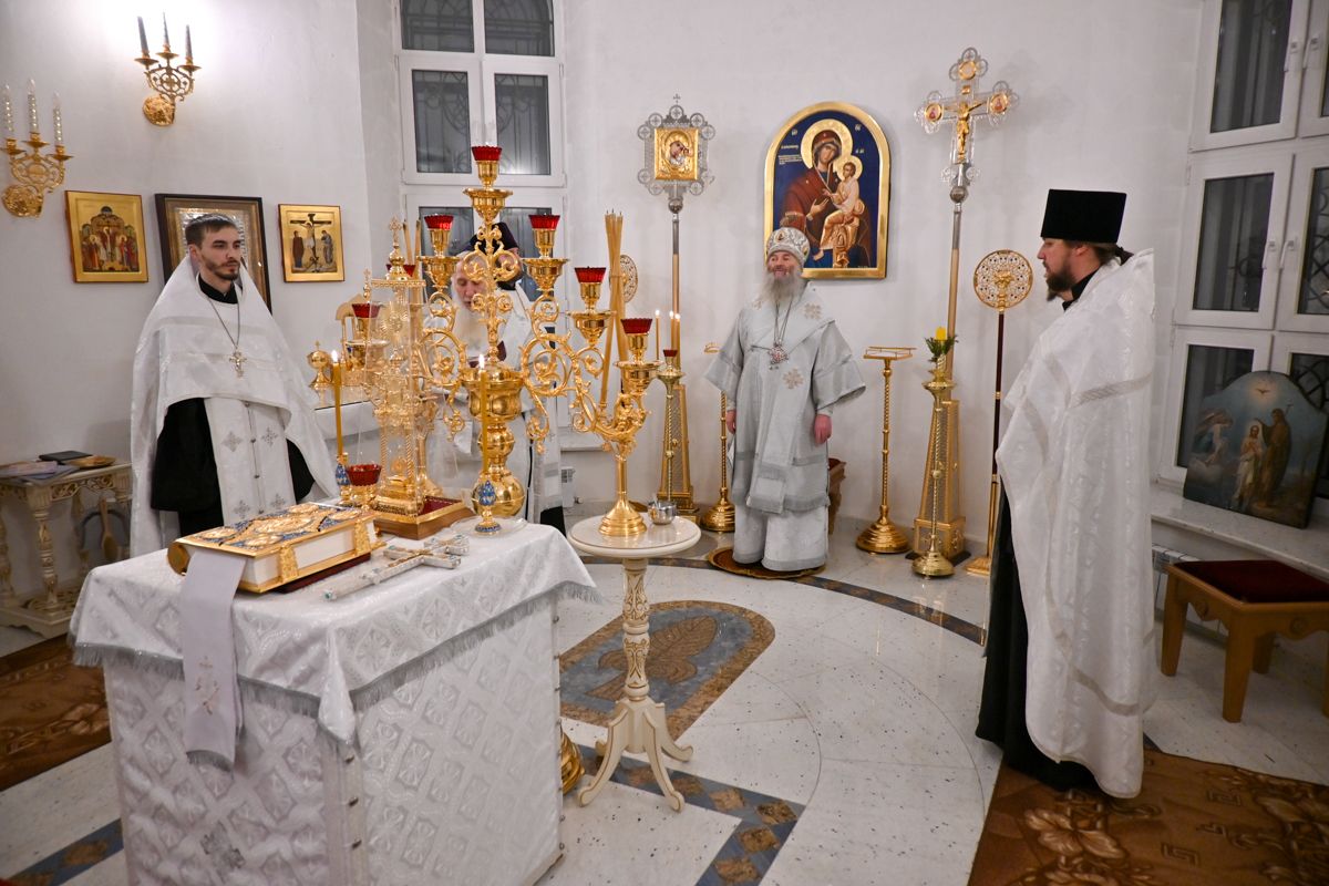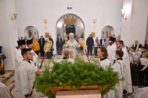 Архипастырю сослужили настоятель храма иерей Алексий Михеев, клирики храма иереи иереи Алексий Кирюшкин, Игорь Коваль, Сергий Пуртов и диакон Олег Михайлов, а также протодиакон Михаил Козловский. Песнопения исполнял хор храма под управлением Александры Ивановой.