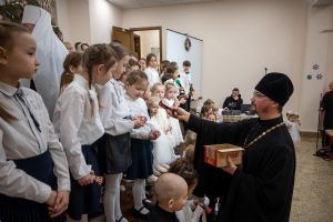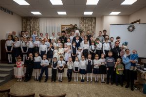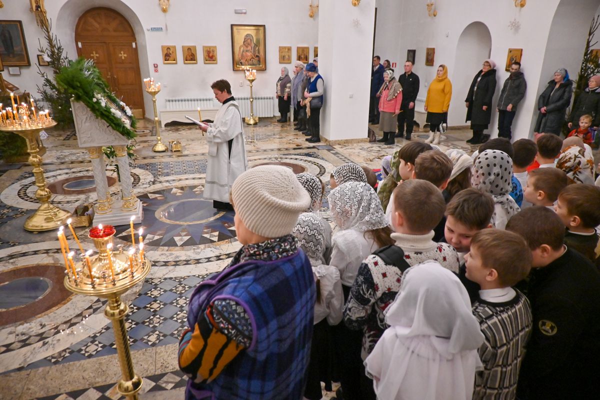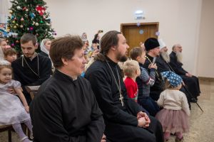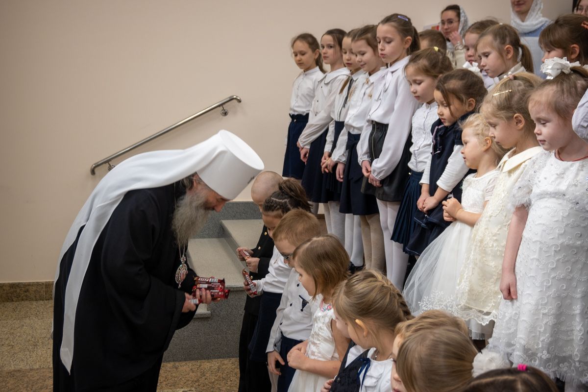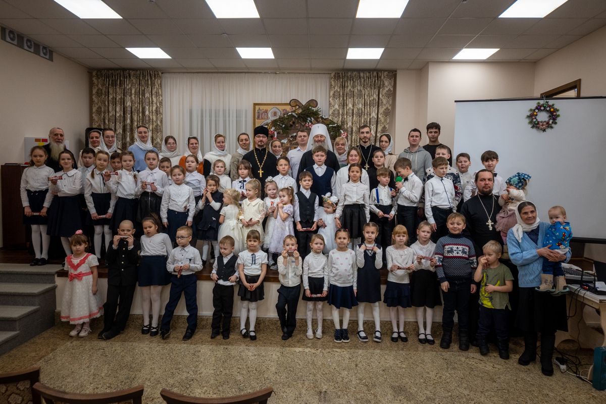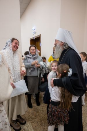 В завершение владыка посетил в воскресной школе храма рождественский концерт, по окончании которого вручил детям сладкие подарки.