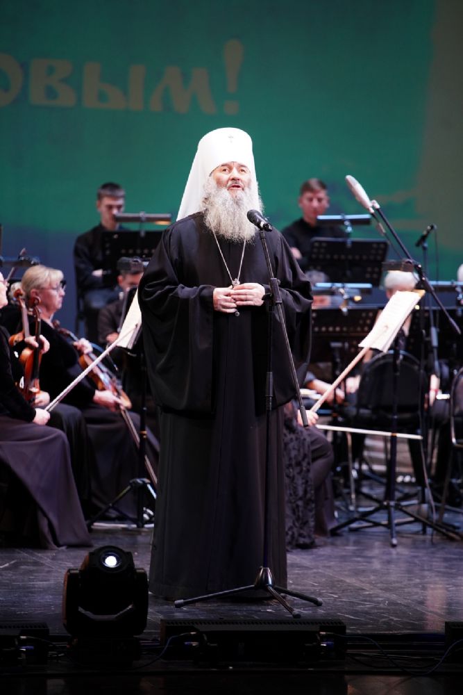 Концерт открыл академический хор колледжа культуры им. Палантая, исполнив рождественский тропарь и кондак, затем митрополит Иоанн обратился к собравшимся в переполненном зале зрителям с архипастырским словом.