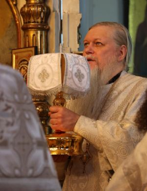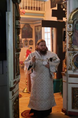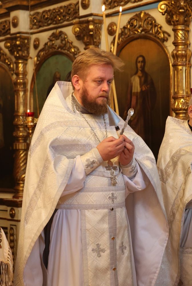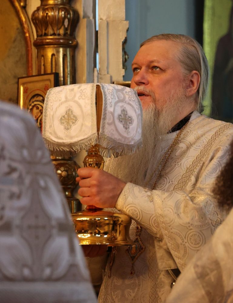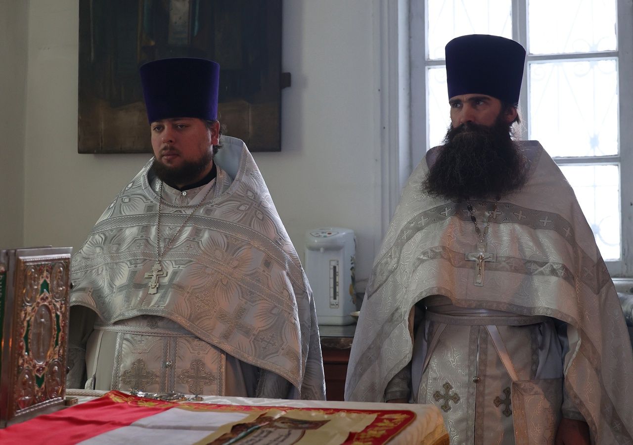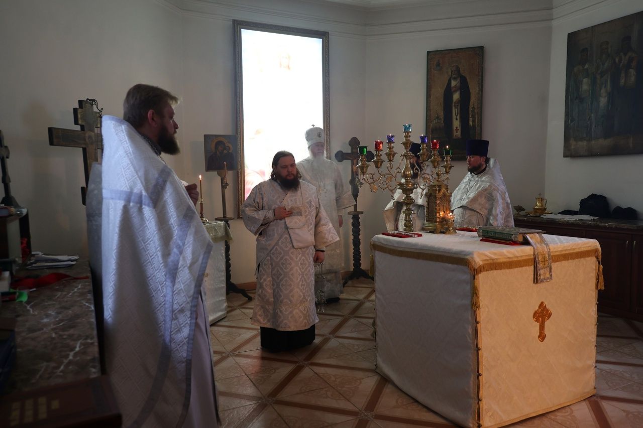 Его Преосвященству сослужили благочинный Волжского церковного округа протоиерей Иоанн Белинский, клирик храма святителя Гурия иерей Димитрий Карпетченко, клирики Никольского кафедрального собора г. Волжска иерей Иоанн Лапшинский, иерей Алексий Пидвысоцкий, диакон Иоанн Захаров.