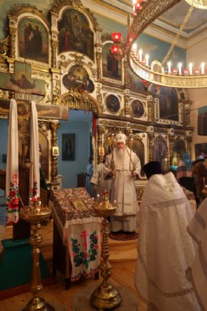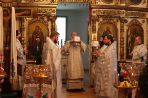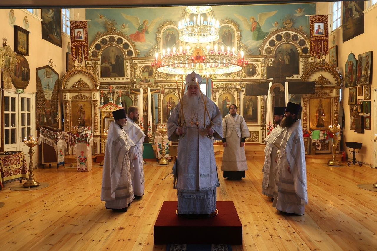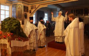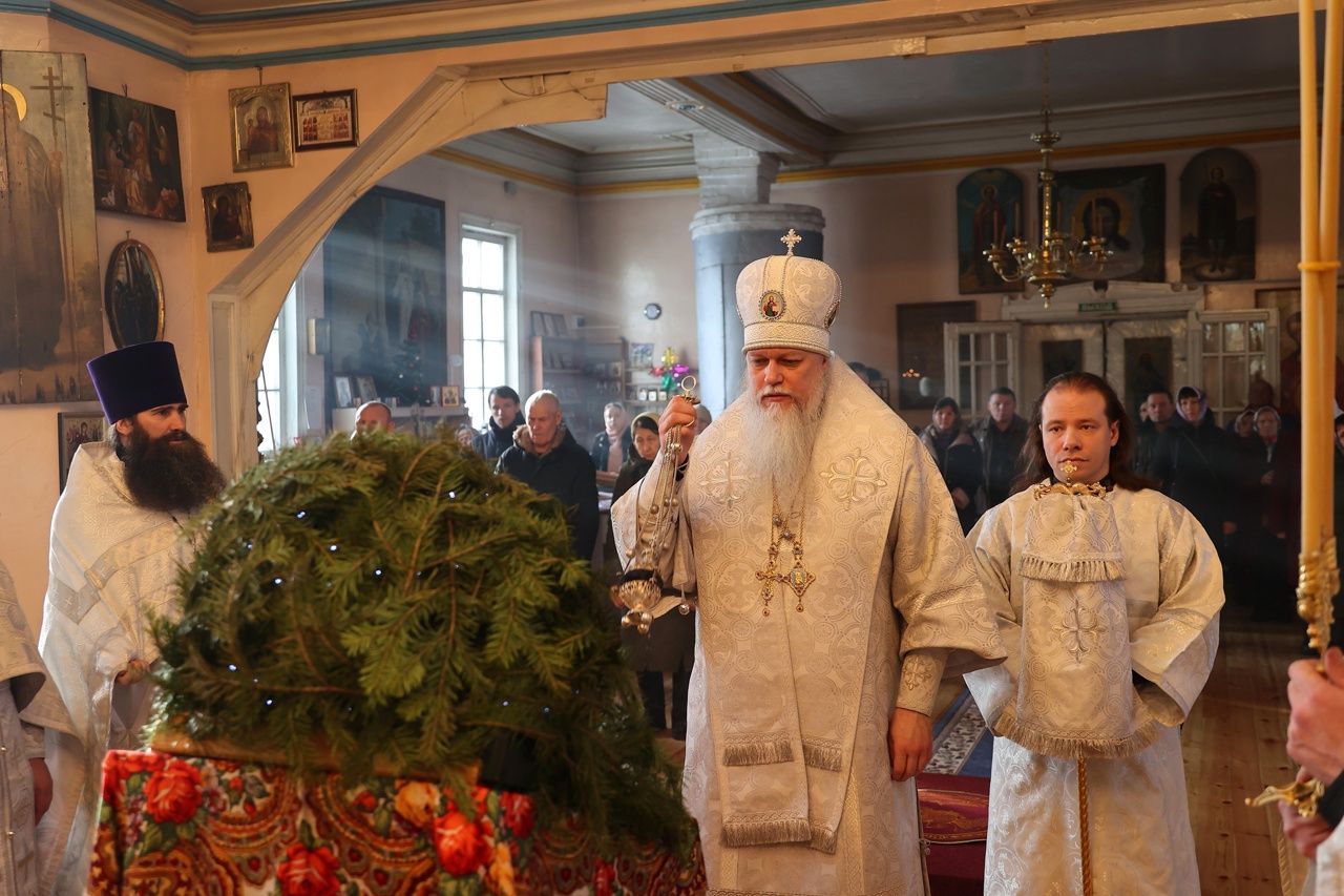 13 января, в день отдания праздника Рождества Христова, епископ Волжский и Сернурский Феофан совершил Божественную литургию в храме святителя Гурия Казанского на архиерейском подворье в д. Нижний Азъял Волжского района.