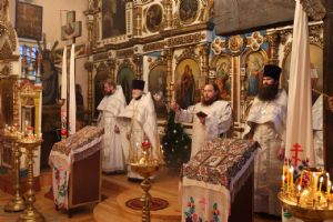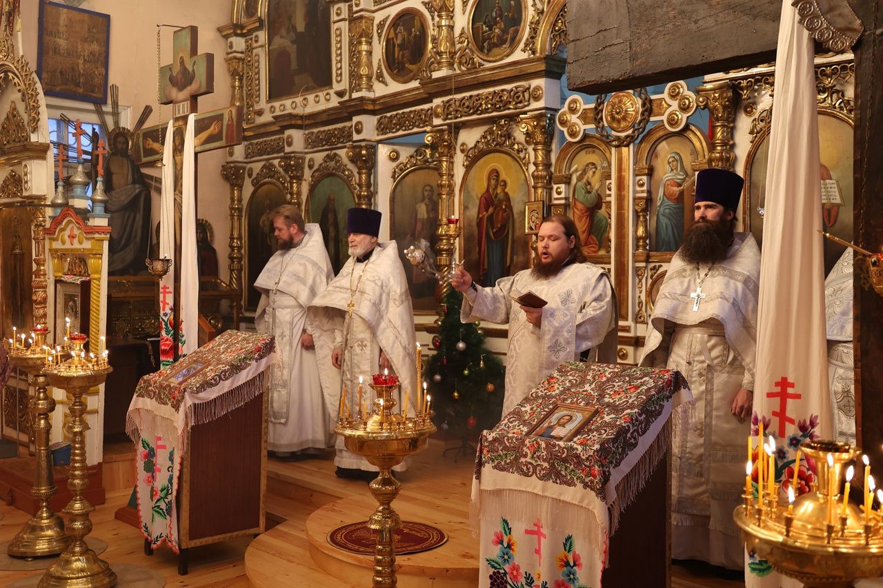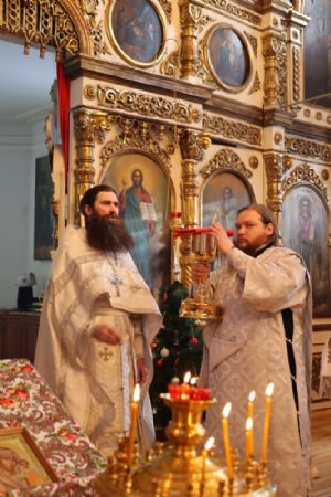 По заамвонной молитве перед иконой праздника были пропеты тропарь, кондак и величание Рождеству Христову.