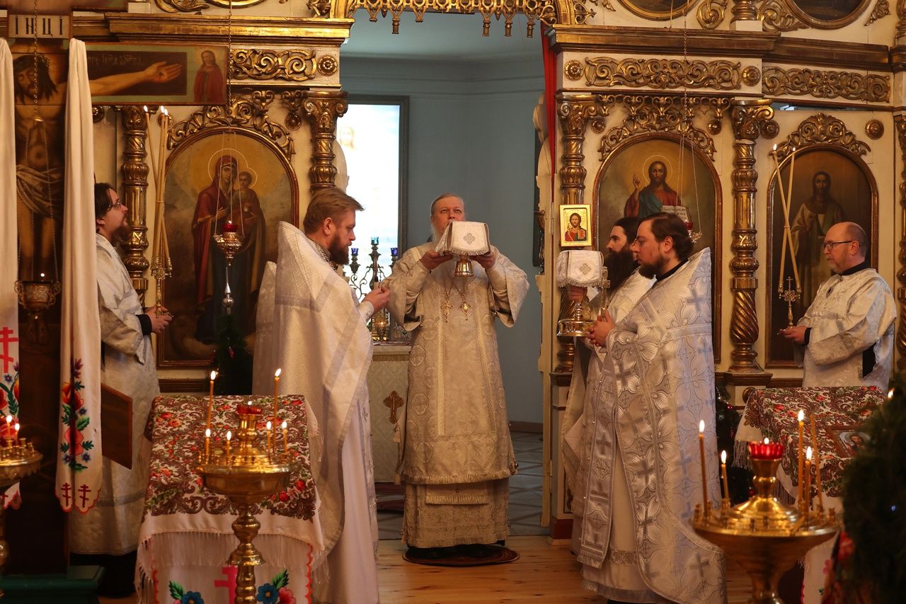 «Сегодня Церковь завершает празднование Рождества Христова, и мы с вами собрались в этом святом храме, чтобы прославить Господа нашего Иисуса Христа, Который нас ради человек и нашего ради спасения сошёл с небес и благоизволил родиться на земле чудесным образом, приняв человеческую природу от Приснодевы Марии.