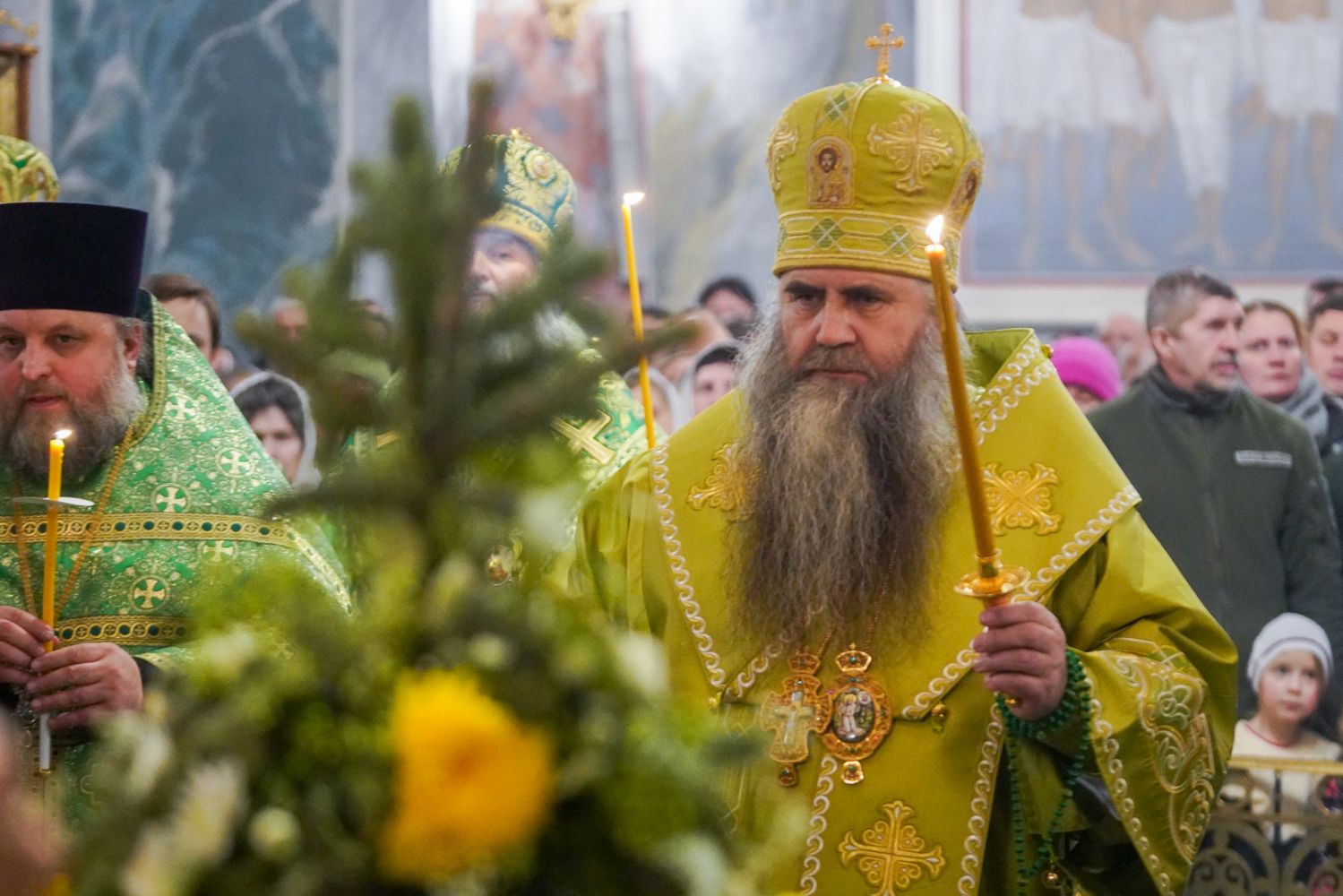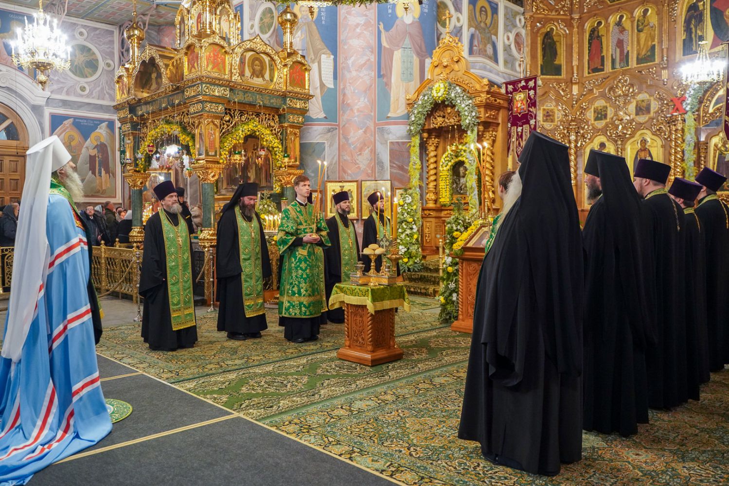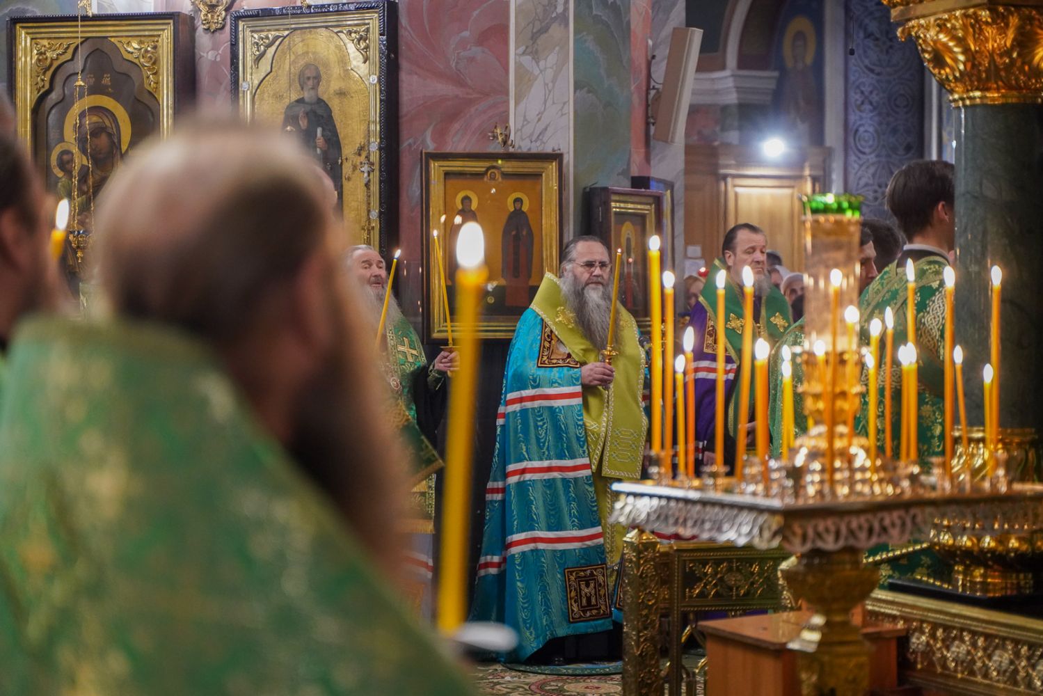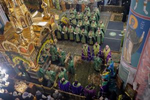 Богослужение возглавил митрополит Нижегородский и Арзамасский Георгий. Ему сослужили митрополит Йошкар-Олинский и Марийский Иоанн, викарий Нижегородской епархии епископ Балахнинский Илия, епископ Канашский и Беловолжский Стефан, викарий Нижегородской епархии епископ Дальнеконстантиновский Филарет, епископ Альметьевский и Бугульминский Мефодий, епископ Скопинский и Шацкий Питирим, викарий Нижегородской епархии епископ Сормовский Иннокентий, епископ Лысковский и Лукояновский Силуан, епископ Городецкий и Ветлужский Парамон, а также секретарь Нижегородского епархиального управления протоиерей Сергий Матвеев, благочинные округов, настоятели монастырей и другие клирики епархии.