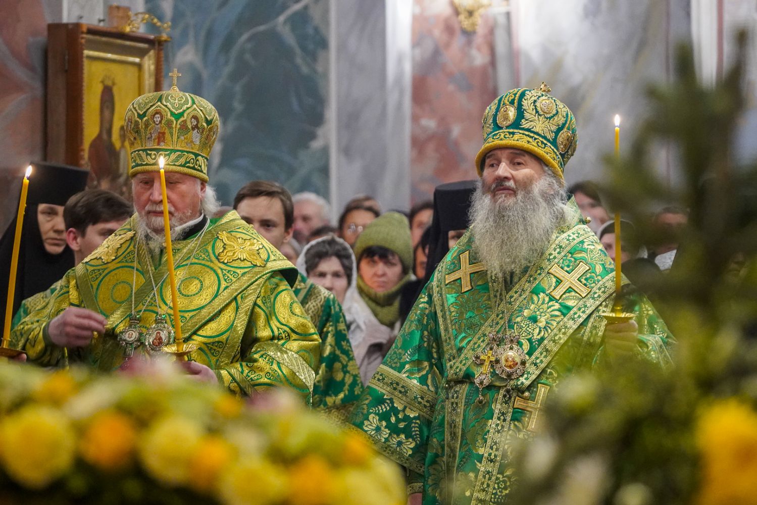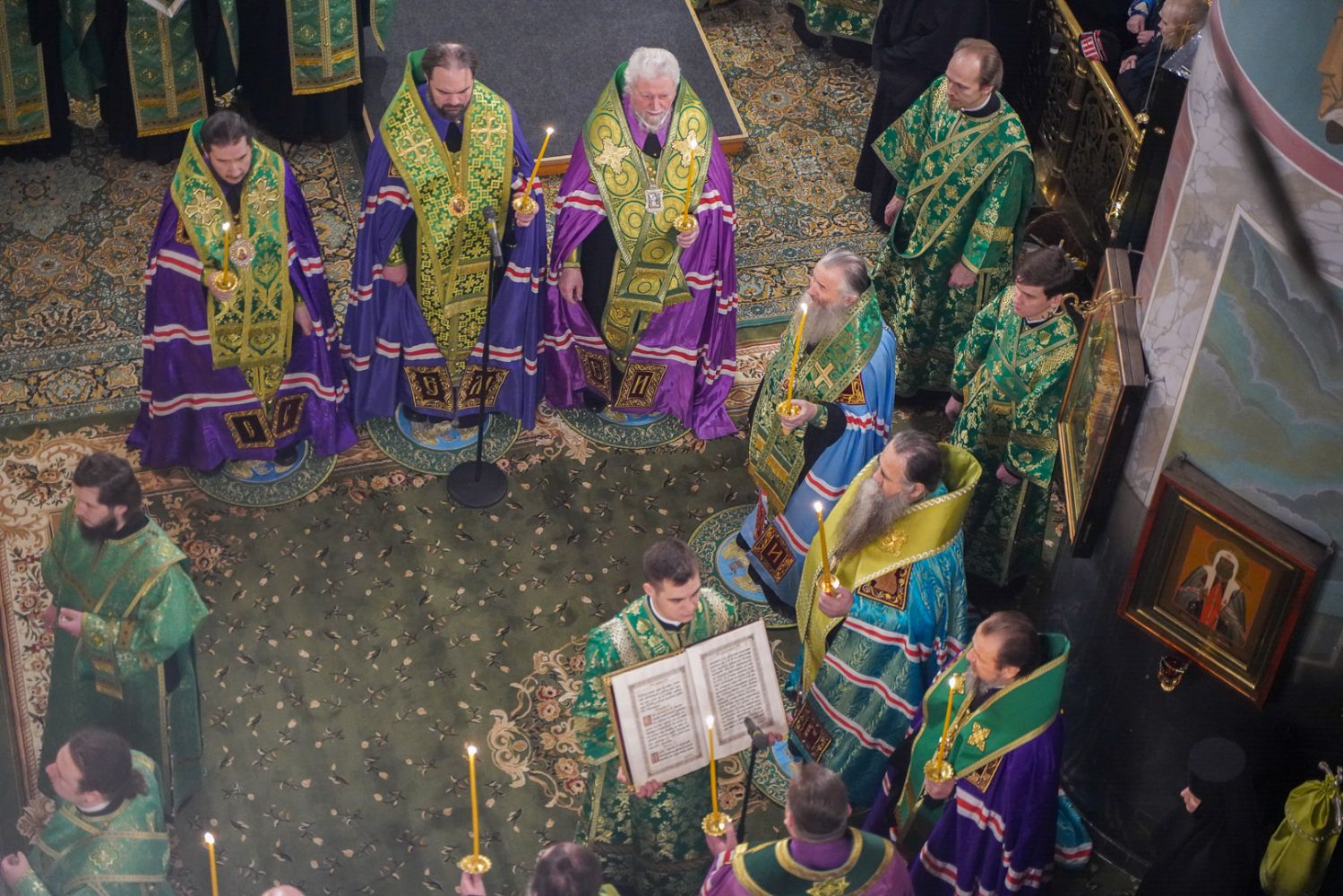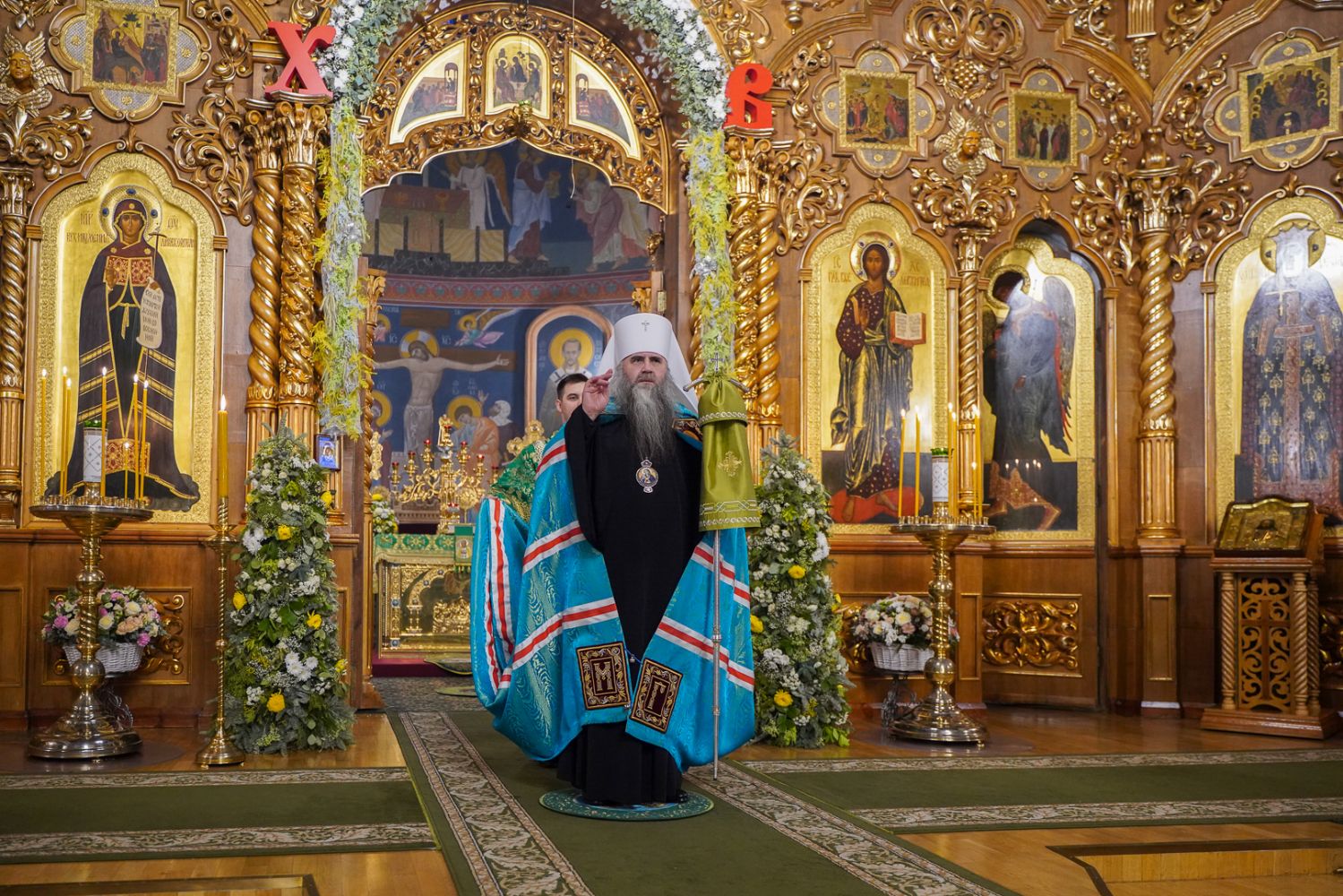 Богослужение возглавил митрополит Нижегородский и Арзамасский Георгий. Ему сослужили митрополит Йошкар-Олинский и Марийский Иоанн, викарий Нижегородской епархии епископ Балахнинский Илия, епископ Канашский и Беловолжский Стефан, викарий Нижегородской епархии епископ Дальнеконстантиновский Филарет, епископ Альметьевский и Бугульминский Мефодий, епископ Скопинский и Шацкий Питирим, викарий Нижегородской епархии епископ Сормовский Иннокентий, епископ Лысковский и Лукояновский Силуан, епископ Городецкий и Ветлужский Парамон, а также секретарь Нижегородского епархиального управления протоиерей Сергий Матвеев, благочинные округов, настоятели монастырей и другие клирики епархии.