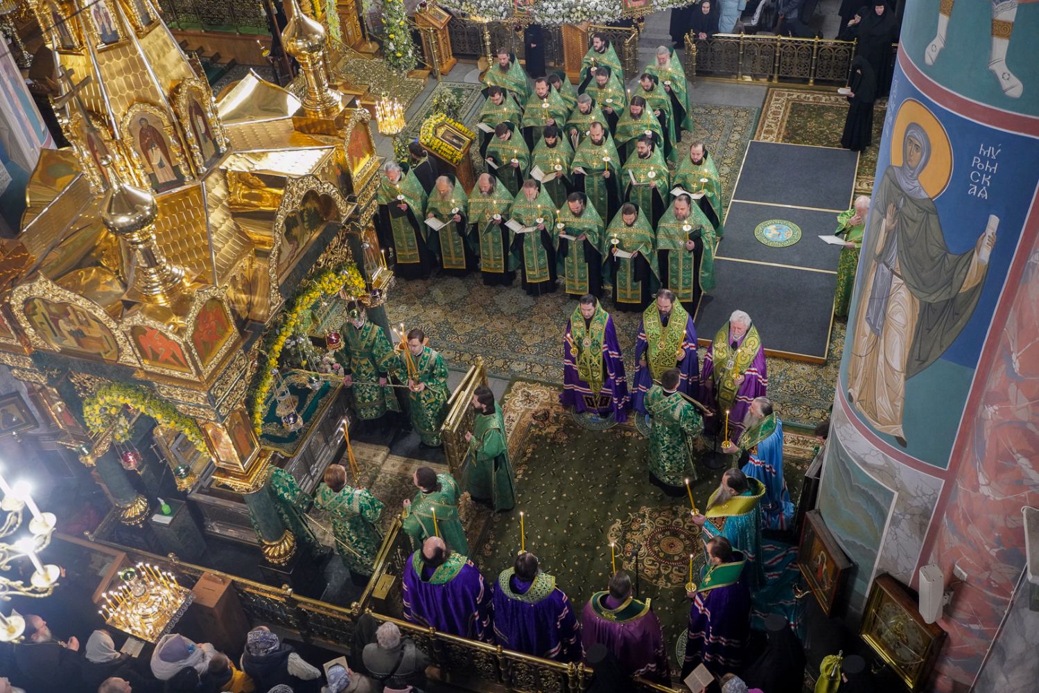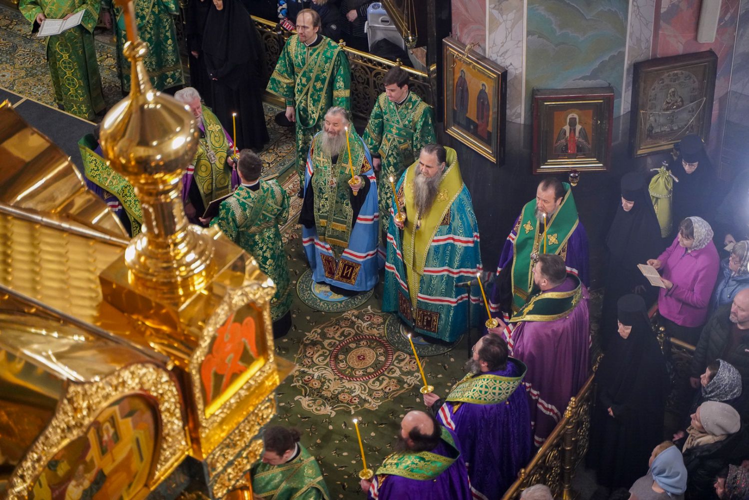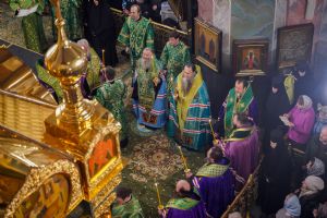В храме вместе с паломниками и прихожанами молились настоятельница Дивеевского монастыря игумения Сергия (Конкова) с сестрами обители, настоятельница Покровского монастыря в селе Лукино Богородского района игумения Гавриила (Суханова), настоятельница арзамасского Николаевского монастыря игумения Филарета (Шевченко), настоятельница Абабковского Николаевского Георгиевского монастыря игумения Никона (Желякова), настоятельница Свято-Троицкого Макарьевского Желтоводского монастыря игумения Нина (Антонова), заместитель председателя Синодального отдела по взаимоотношениям Церкви с обществом и СМИ Игорь Мещан.