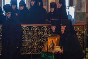 По окончании литургии настоятельница Дивеевского монастыря поблагодарила архипастырей и сугубо митрополита Георгия за совершенное богослужение. Управляющему Нижегородской епархией она преподнесла заздравную просфору и икону преподобного Серафима Саровского.