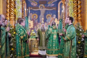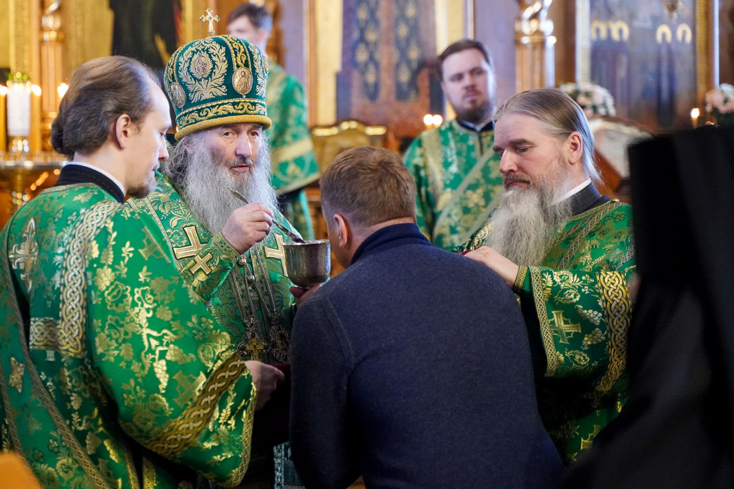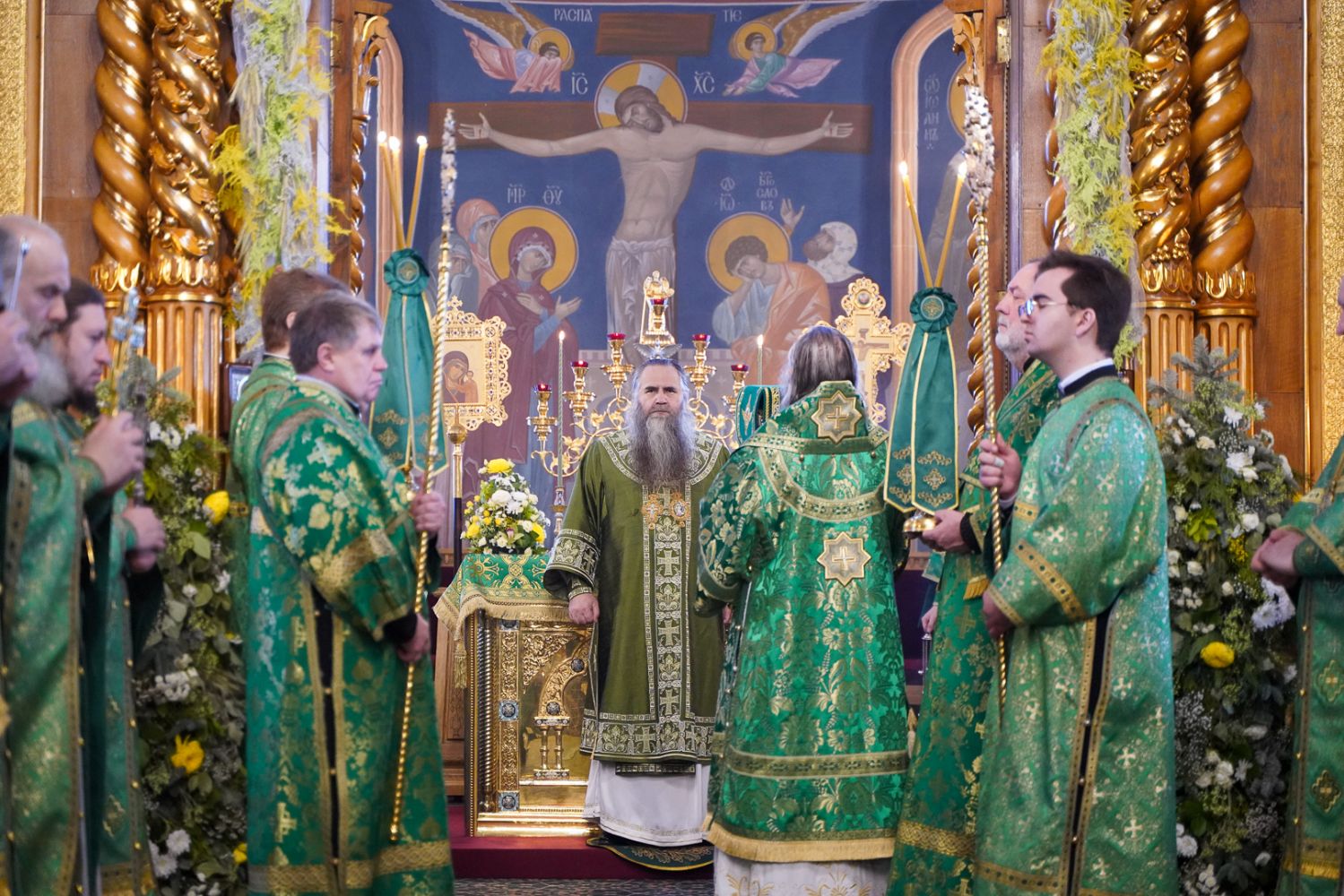 Богослужение возглавил митрополит Нижегородский и Арзамасский Георгий. Ему сослужили митрополит Йошкар-Олинский и Марийский Иоанн, викарий Нижегородской епархии епископ Балахнинский Илия, епископ Канашский и Беловолжский Стефан, викарий Нижегородской епархии епископ Дальнеконстантиновский Филарет, епископ Альметьевский и Бугульминский Мефодий, епископ Скопинский и Шацкий Питирим, викарий Нижегородской епархии епископ Сормовский Иннокентий, епископ Лысковский и Лукояновский Силуан, епископ Городецкий и Ветлужский Парамон, епископ Выборгский и Приозерский Варнава, епископ Краснослободской и Темниковский Климент, а также секретарь Нижегородского епархиального управления протоиерей Сергий Матвеев, благочинные округов, настоятели монастырей и другие клирики епархии.