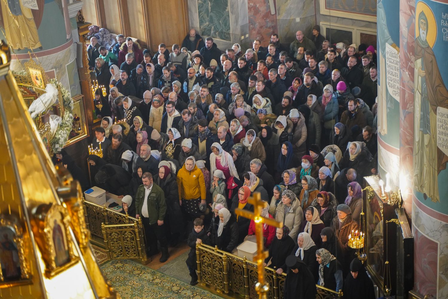 В храме вместе с паломниками и прихожанами молились настоятельница Дивеевского монастыря игумения Сергия (Конкова) с сестрами обители, настоятельница Крестовоздвиженского монастыря Нижнего Новгорода игумения Филарета (Гажу), настоятельница Покровского женского монастыря в селе Лукино Богородского района, игумения Гавриила (Суханова), настоятельница Николаевского женского монастыря игумения Филарета (Шевченко), настоятельница Абабковского Николаевского Георгиевского монастыря игумения Никона (Желякова), настоятельница Свято-Троицкого Макарьевского Желтоводского монастыря игумения Нина (Антонова), настоятельница архиерейского подворья Арзамасского Новодевичьего Алексия, человека Божия, монастыря монахиня Феогноста (Гончарова), заместитель председателя Синодального отдела по взаимоотношениям Церкви с обществом и СМИ Игорь Мещан.