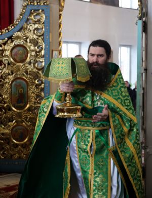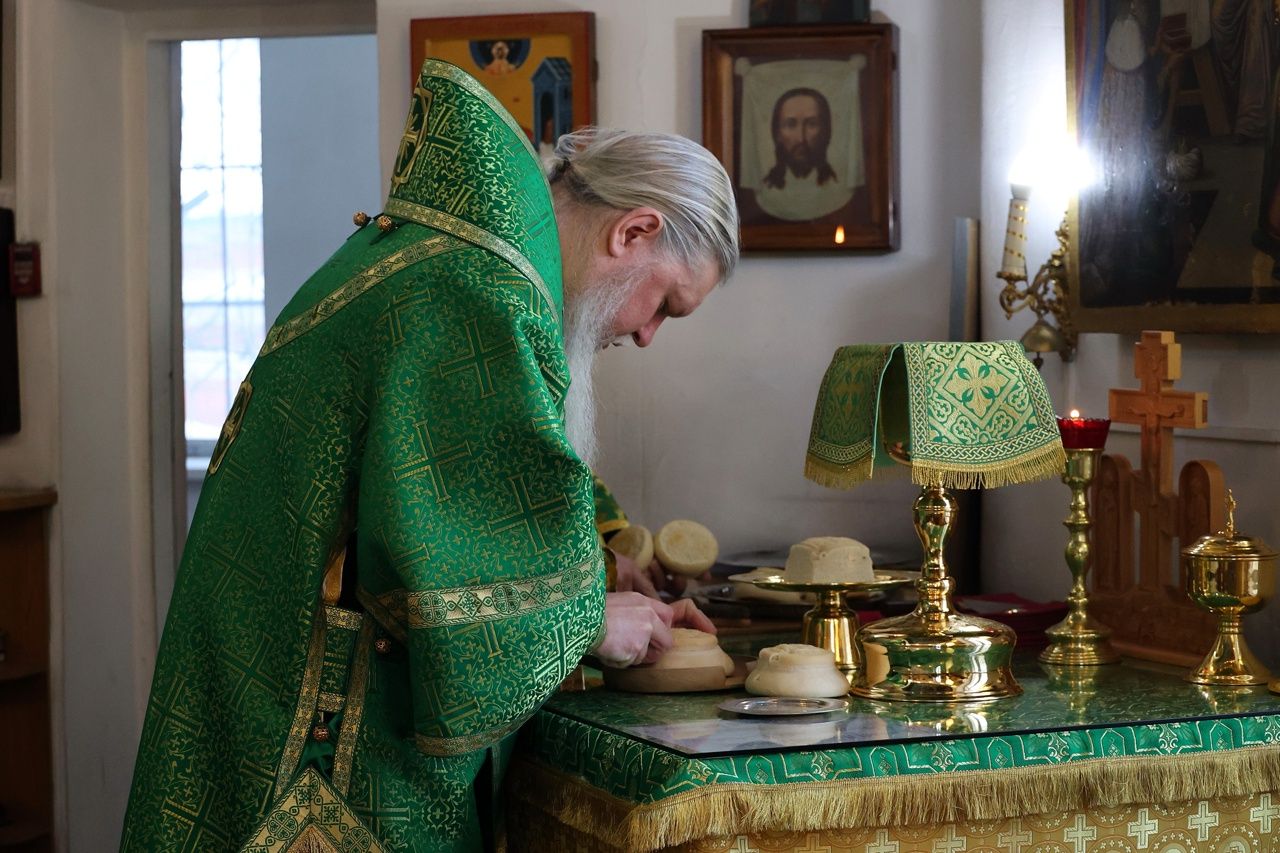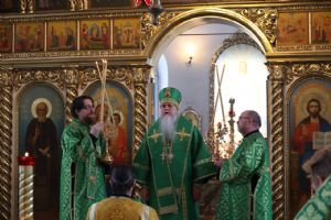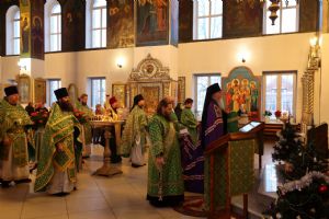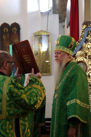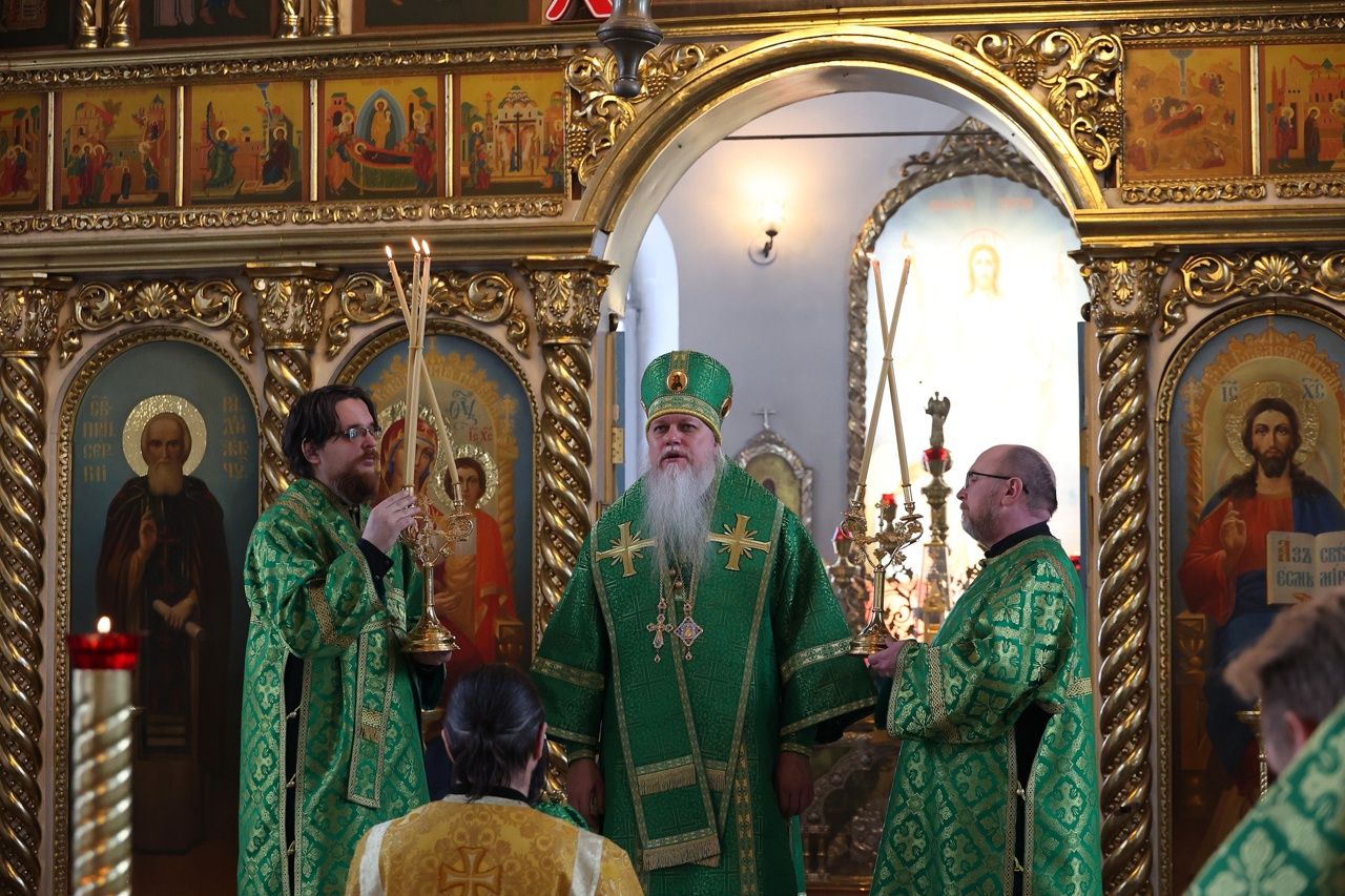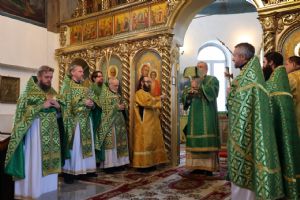 Его Преосвященству сослужили клирики собора. Песнопения исполняли архиерейский хор.