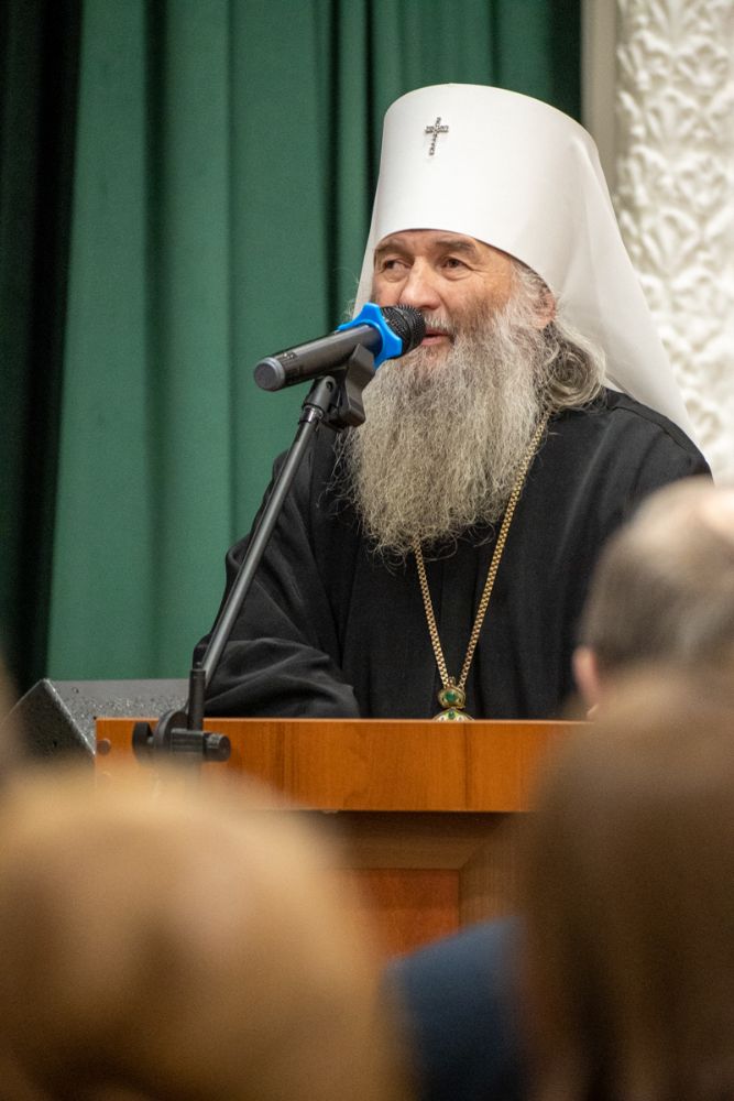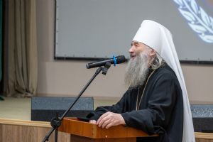 Митрополит Иоанн в своем поздравительном слове отметил, что 70 лет – это время, когда человек может оглянуться назад и посмотреть на своих детей, своих учеников, которых он воспитал, открывая перед ними познание нашего Марийского края, вкладывая в них свое сердце и душу.